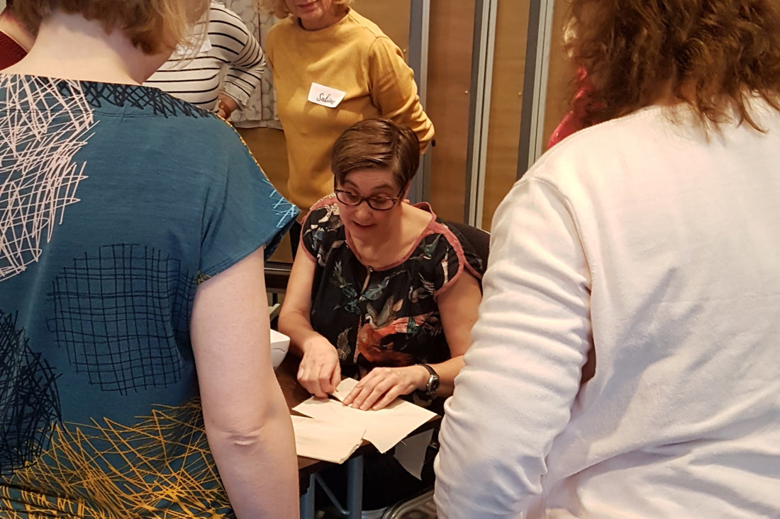 Der Workshop ging insgesamt 4 Stunden und ist wie im Flug vergangen. Es war sehr produktiv. Wir haben zwölf motivierte Damen in die geheime Kunst der Blusenverarbeitung eingeweiht, dazu gehörte z.B. wie man Kragen einsetzt, Manschetten annäht und verdeckte Knopfleisten arbeitet. Alle hatten ihr Erfolgserlebnis und konnten Arbeitsproben mit nach Hause nehmen. Wir freuen uns schon auf den nächsten Kurs, dann sind wir mit einem Hosenschnittkurs dabei.