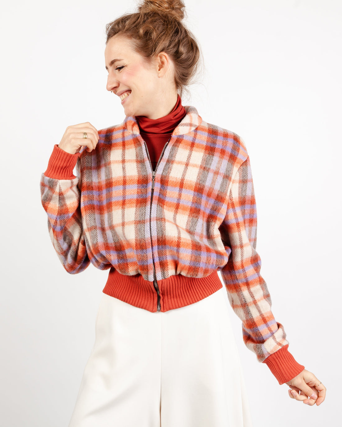 Tiffany wurde in dieser Anleitung aus einem karierten Wollstoff genäht.