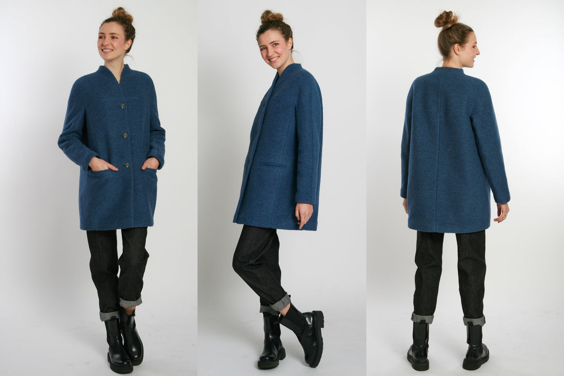 Du bist auf der Suche nach dem ultimativen Schnittmuster für einen Wollmantel? Heidi ist mit einer besonderen Schnittführung ausgestattet, diese erkennst du unten auf der technischen Skizze. Die Konstruktion des Kimonos mit Seitenteil inklusive leichtem O-Shape hat es in sich und wird dich begeistern. Die Ärmel werden zusammen mit dem Oberteil in einer Art Passe über einen Eckpunkt eingenäht. Hört sich schwieriger an, als es ist. Selbstverständlich steht dir unsere bebilderte Nähanleitung auch bei diesem Nähprojekt zur Seite.