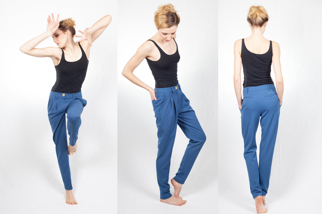 You should have some sewing experience for Alessia, the zip, waistband and pockets pose a few challenges. These pleated trousers have two deep pleats in the front for a casual shape that ends in a very narrow hem. The deep crotch gives Alessia the casual character and is reminiscent of boyfriend pants. Of course, classic pockets shouldn't be missing: slanted pockets at the front, the back welt pockets are processed as fake pockets.