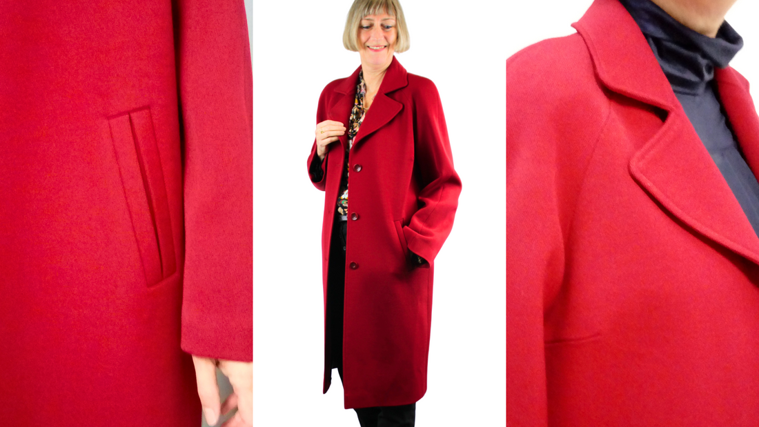 We love the beautiful Indian summer, but we're also already looking forward to cooler temperatures, clear winter nights, and maybe even snow and ice. Until then, you still have plenty of time to sew the Roberta raglan coat. Admittedly, it's not a quick or easy project, but the effort is definitely worth it. The casual and cool shape pairs perfectly with a thick sweater and a fluffy scarf; then, despite the lapel collar, you'll be safe from any cold draft. Other details include the wide welt pockets and the eye-catching tab at the back.
