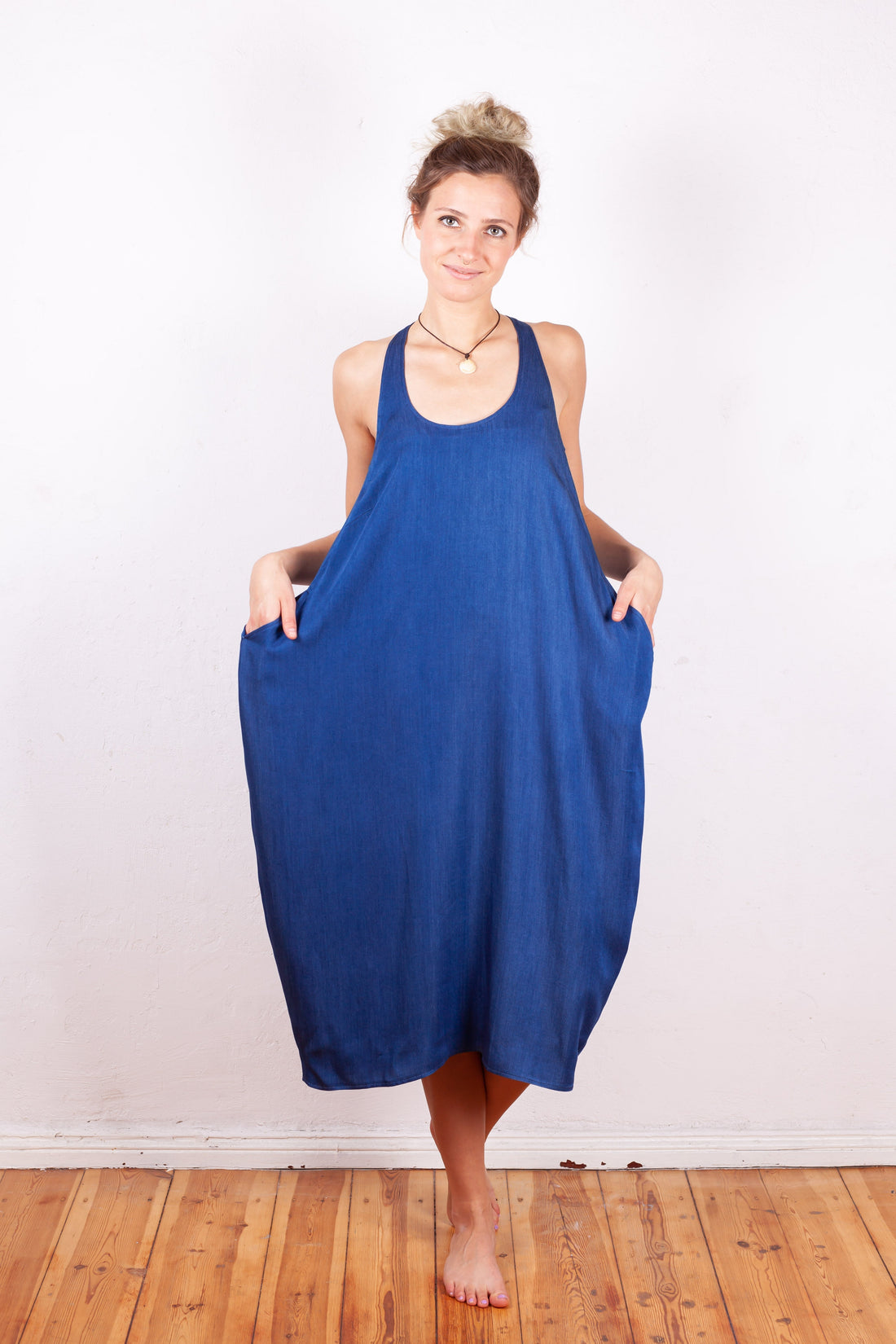 Merissa was sewn in this pattern from a flowing, soft denim fabric.