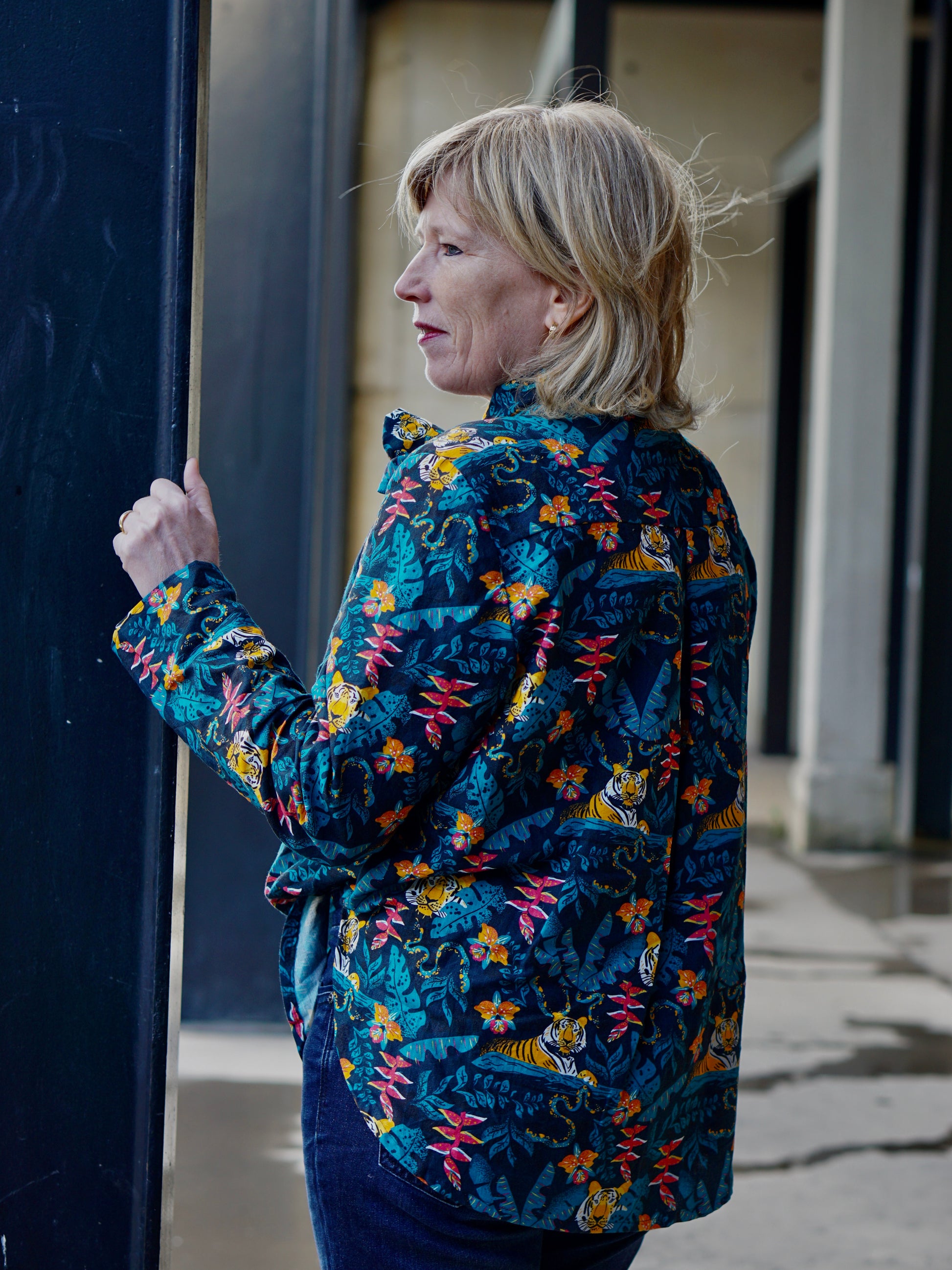 Rückenansicht zum Verlieben: Die raffinierte Falte, die aus der Passe entspringt, ist nicht nur ein echter Hingucker – sie gibt dir auch die Bewegungsfreiheit, die du brauchst. Mit der Überlänge kommt der schwungvolle Look erst richtig zur Geltung. Dreh dich ruhig mal um – diese Rückenpartie verdient Standing Ovations!