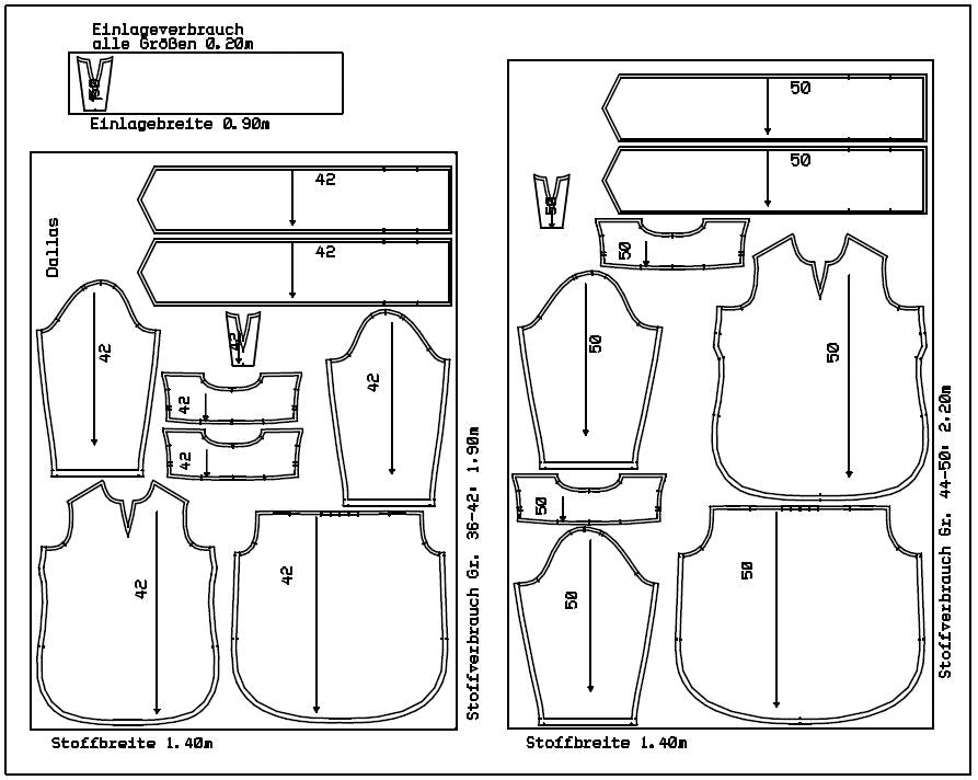 Abwandlungen des Schnittmusters zu sehen, die nicht im Schnitt enthalten