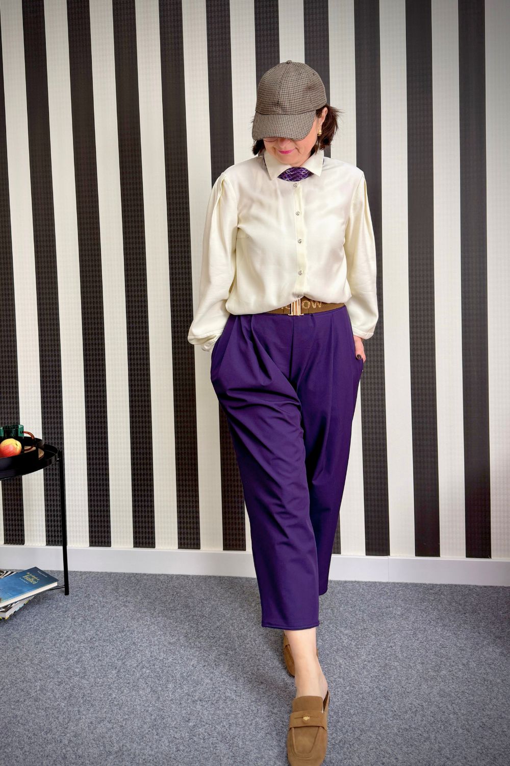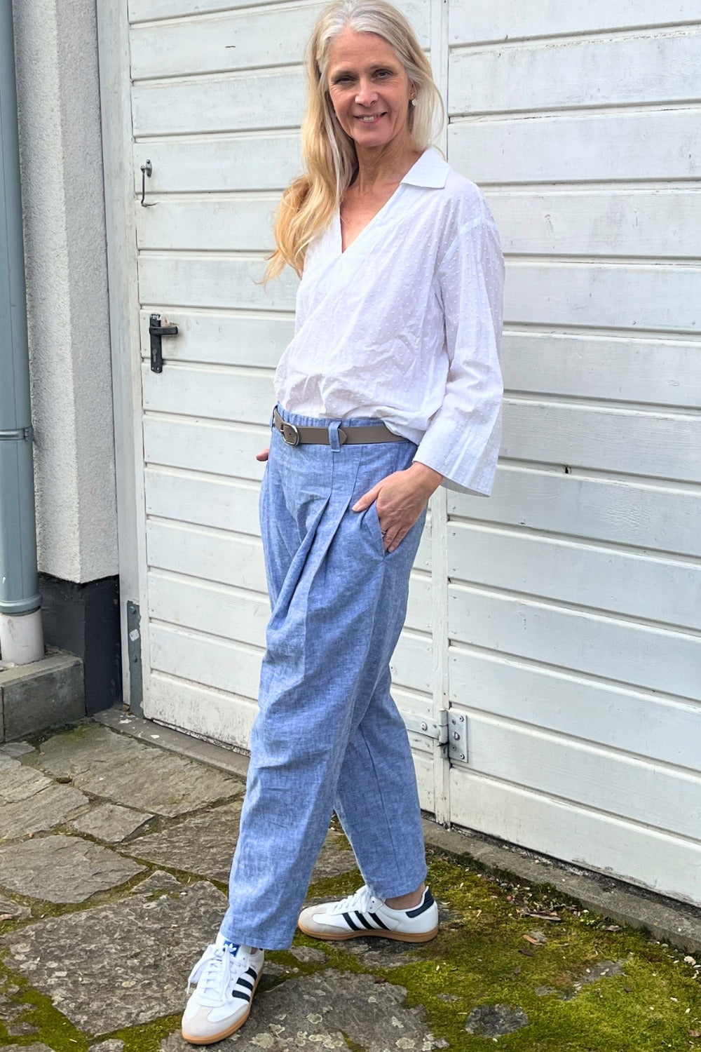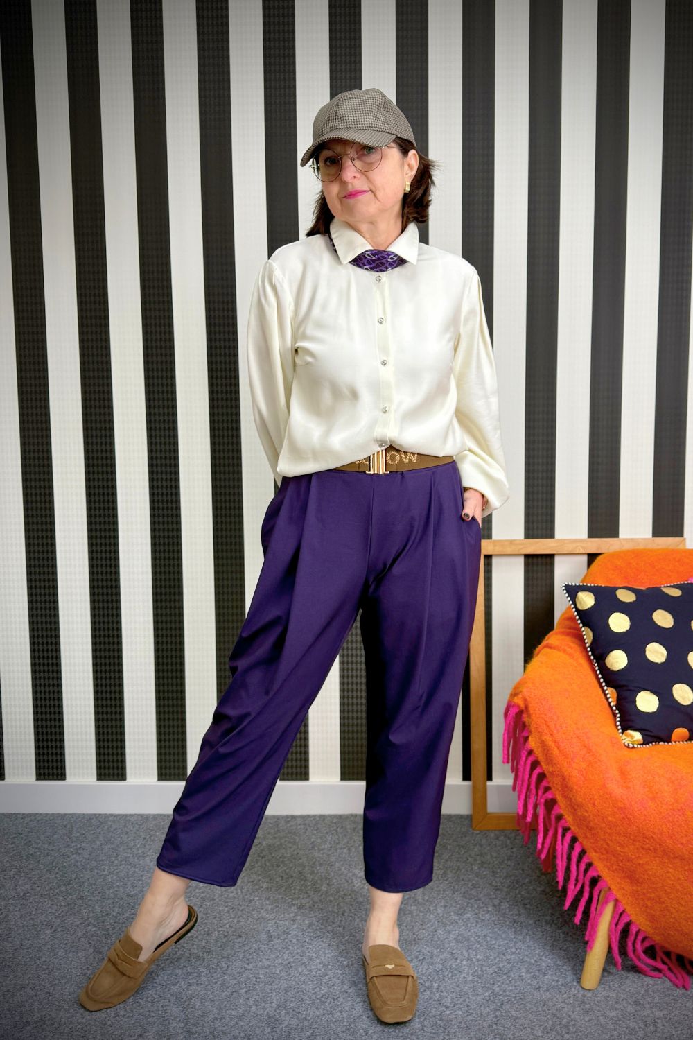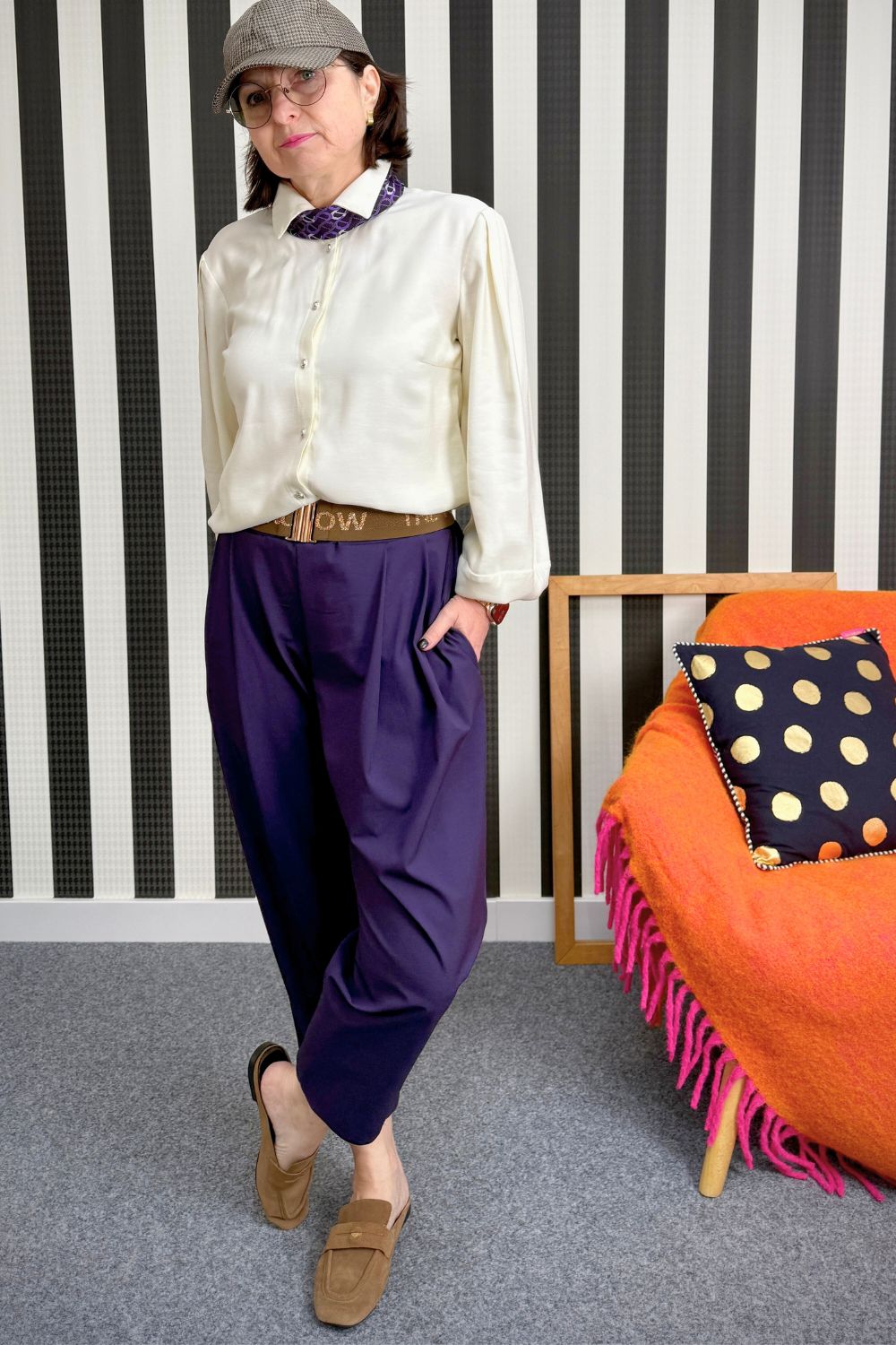 Die Bundfaltenhose funktioniert aber auch gut in Leinen oder Baumwolle, wenn du sie mit etwas mehr Stand haben möchtest.