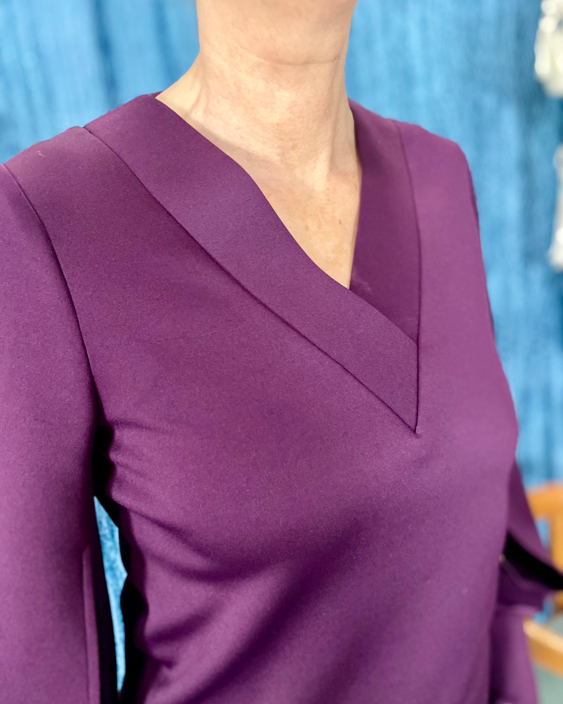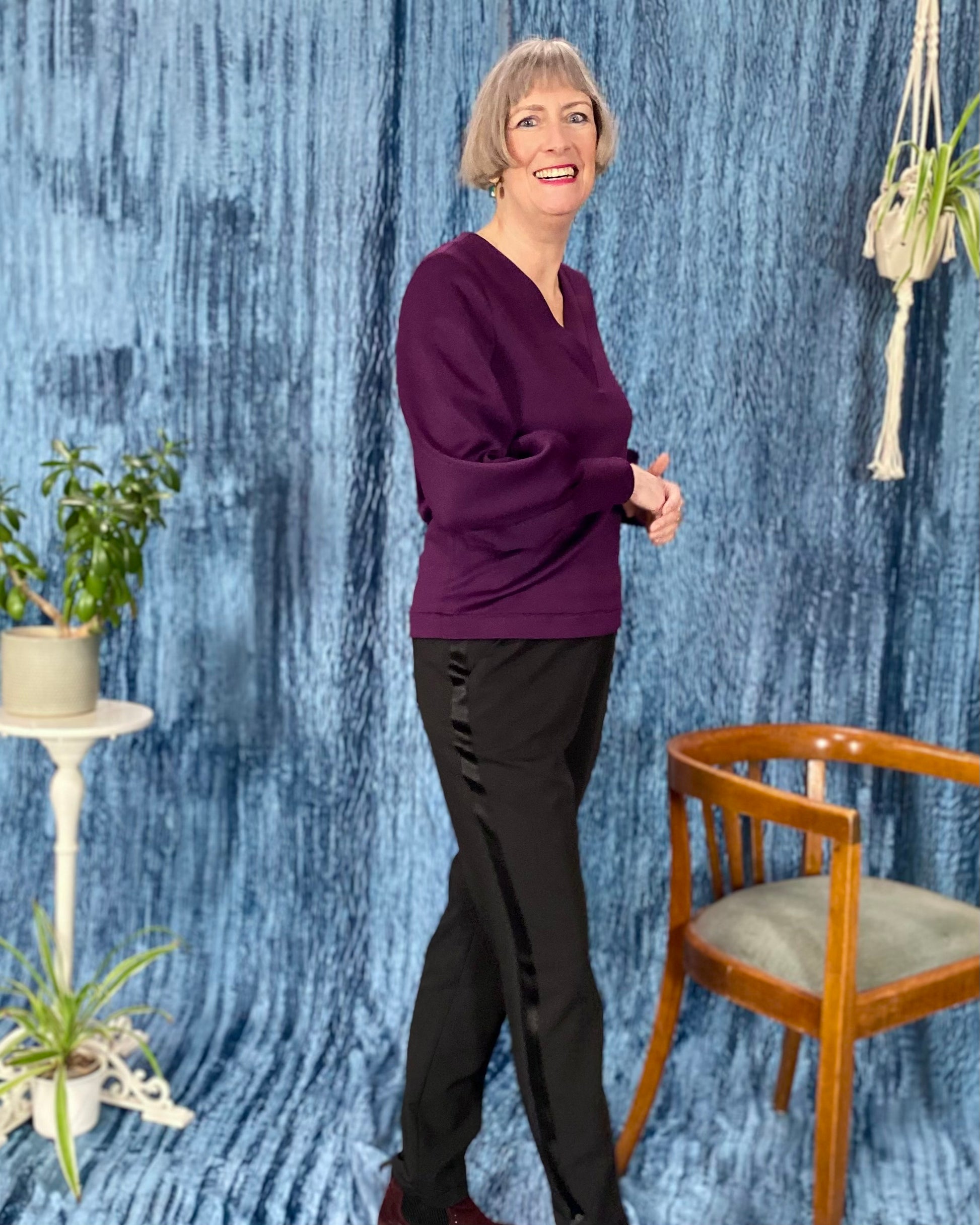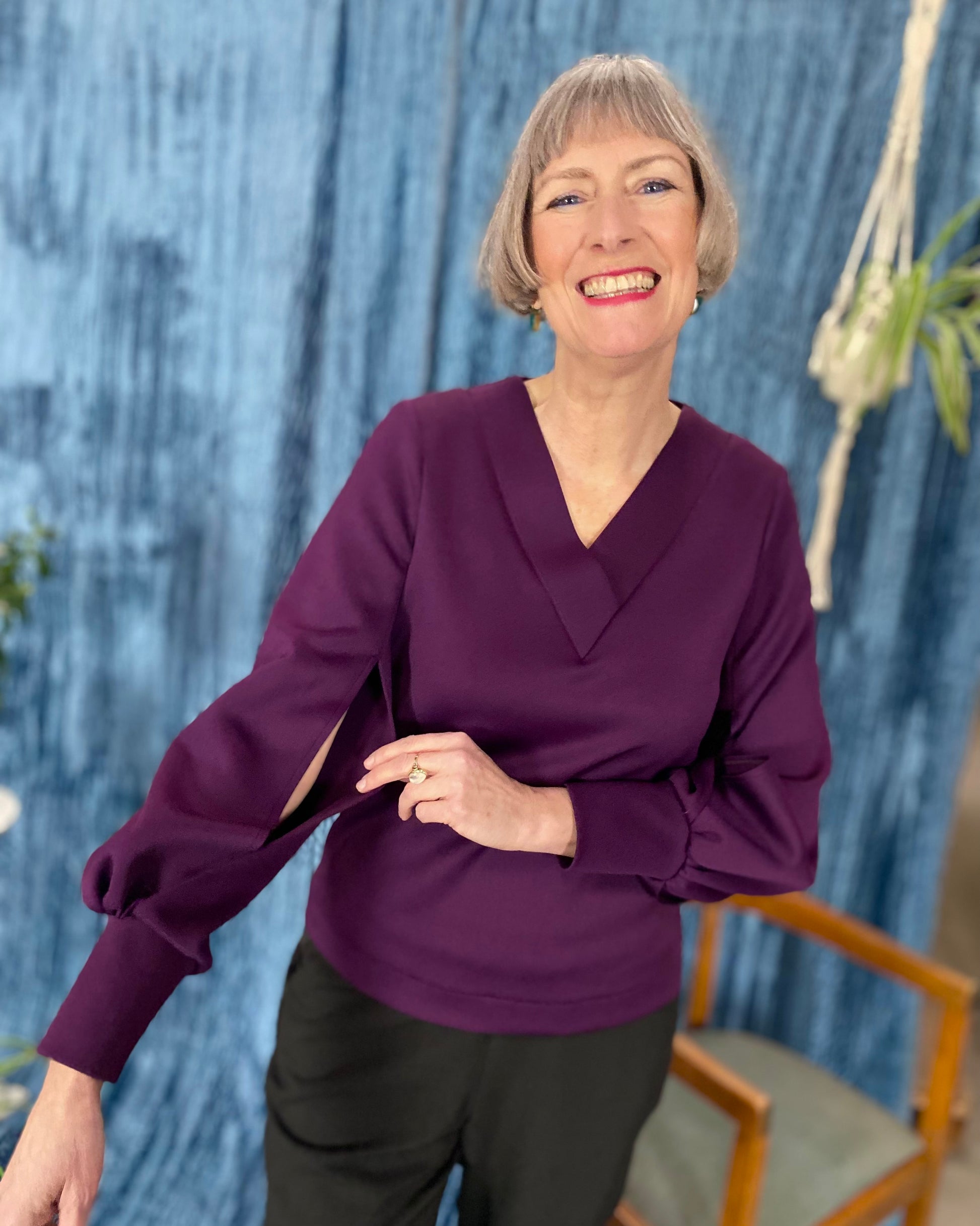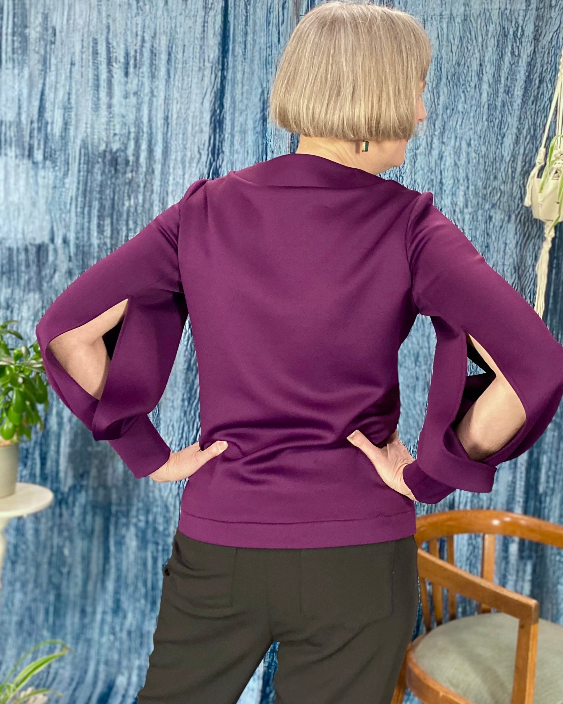 Sewing patterns with special details are our passion. The Umeko sweater has a beautiful V-neck with wide trims. The special feature is the "open" sleeve: the seams are individually processed between the upper arm and cuffs, giving the sweater an airy character. The fit of the sweater is rather slim and therefore feminine, but this in no way limits its comfort. The sleeves, which flare out towards the hem , are gathered together in a high cuff .