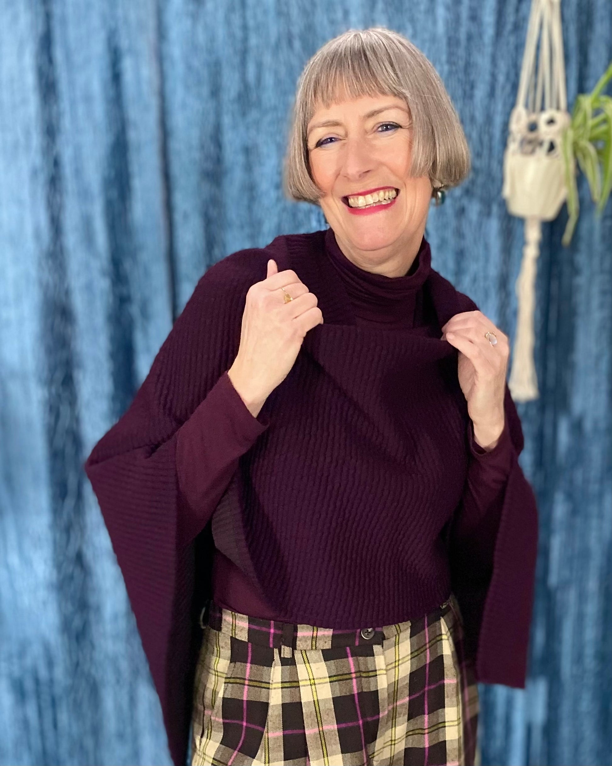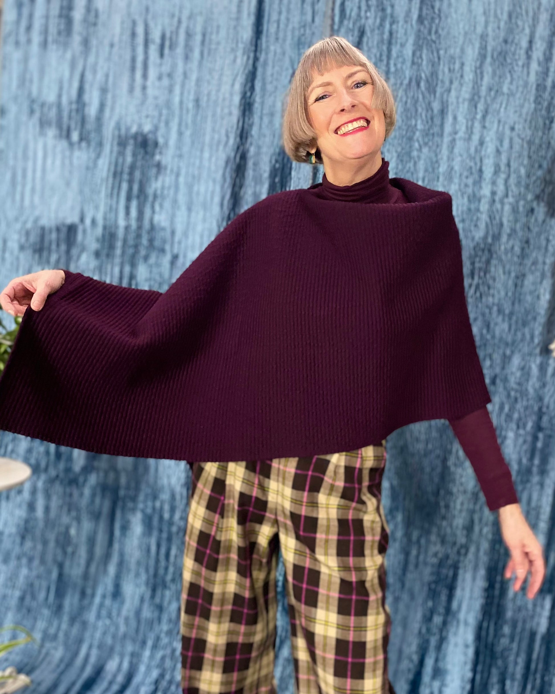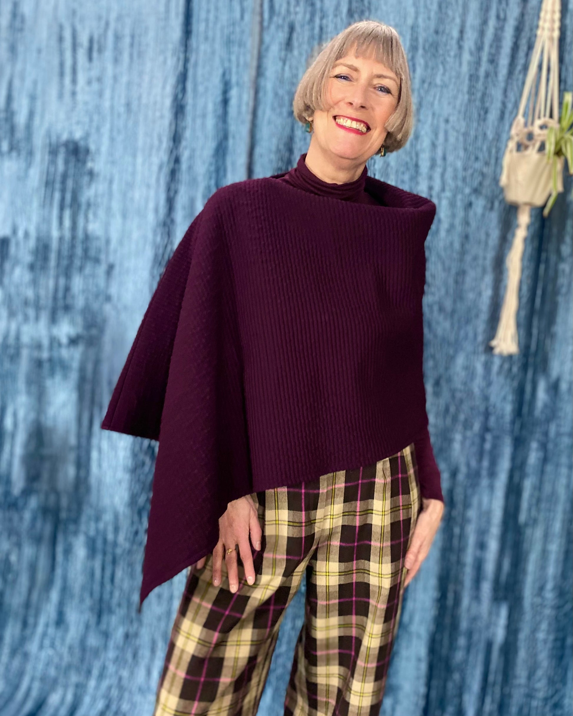 Our Cape Ginger pattern consists of only one piece and one seam and is therefore very easy to sew. The cape can be worn casually over a dress or shirt on cool autumn days.