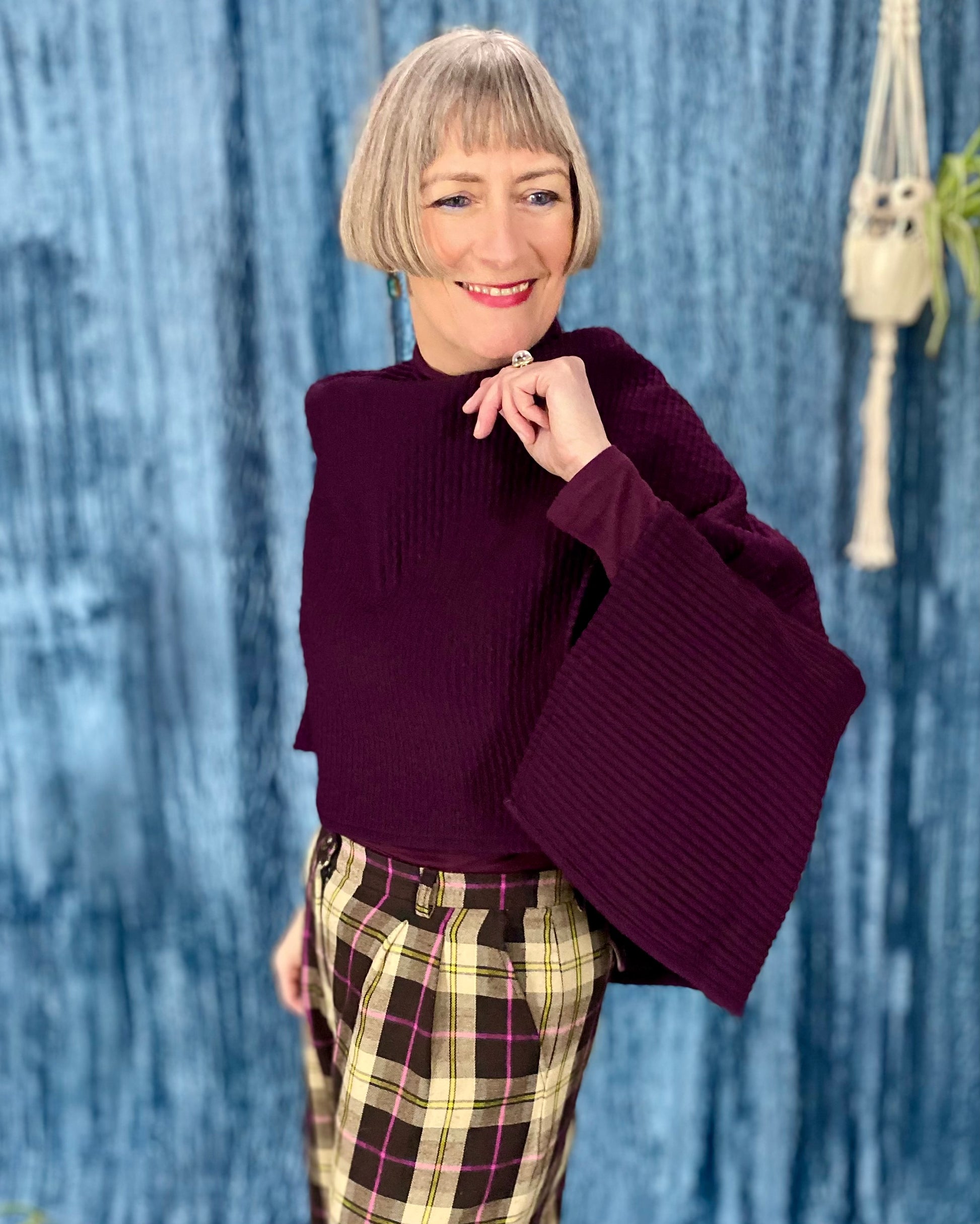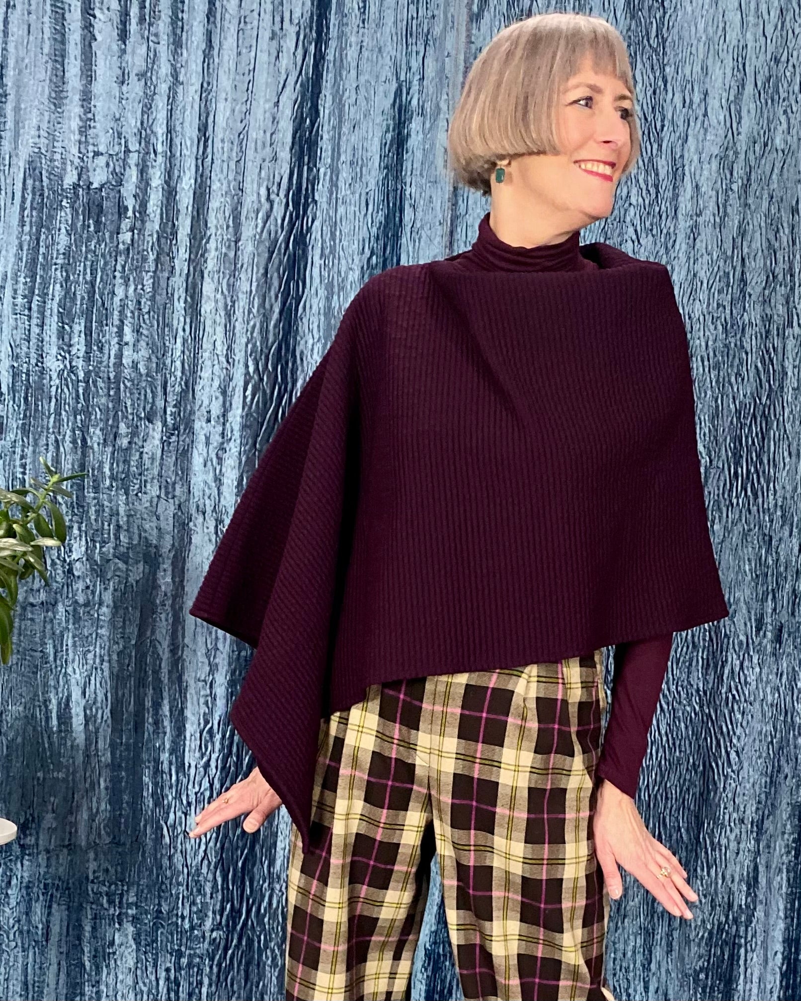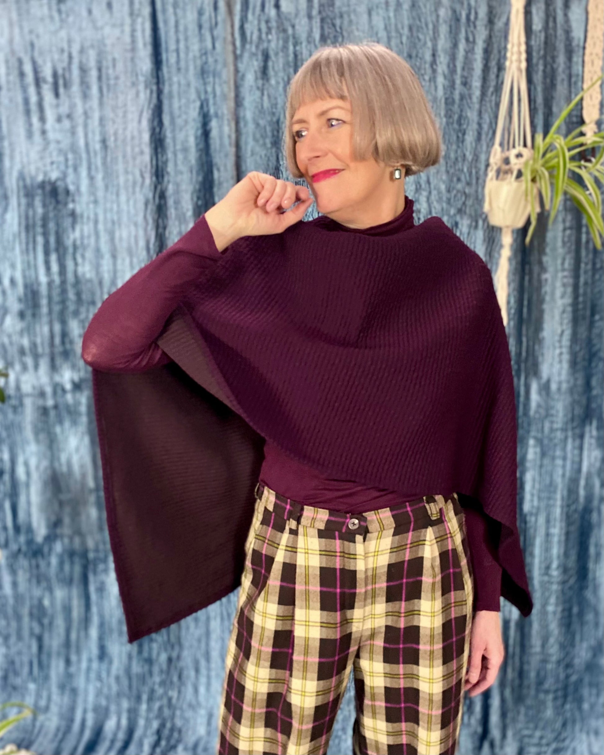 Our Cape Ginger pattern consists of only one piece and one seam and is therefore very easy to sew. The cape can be worn casually over a dress or shirt on cool autumn days.