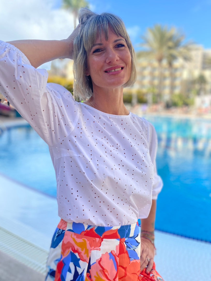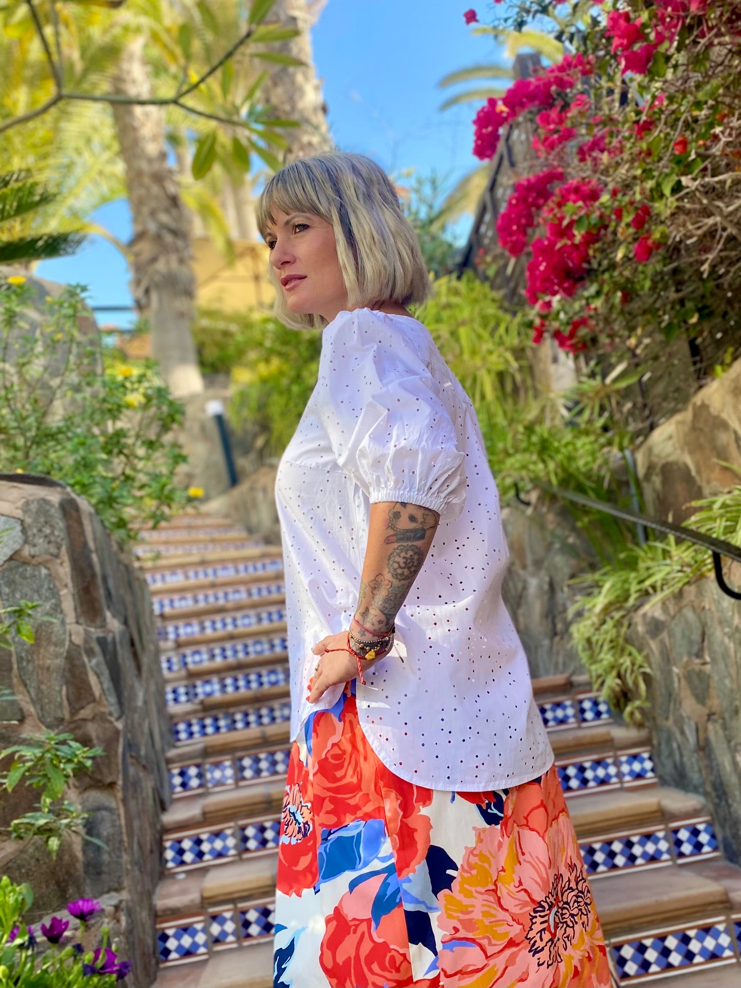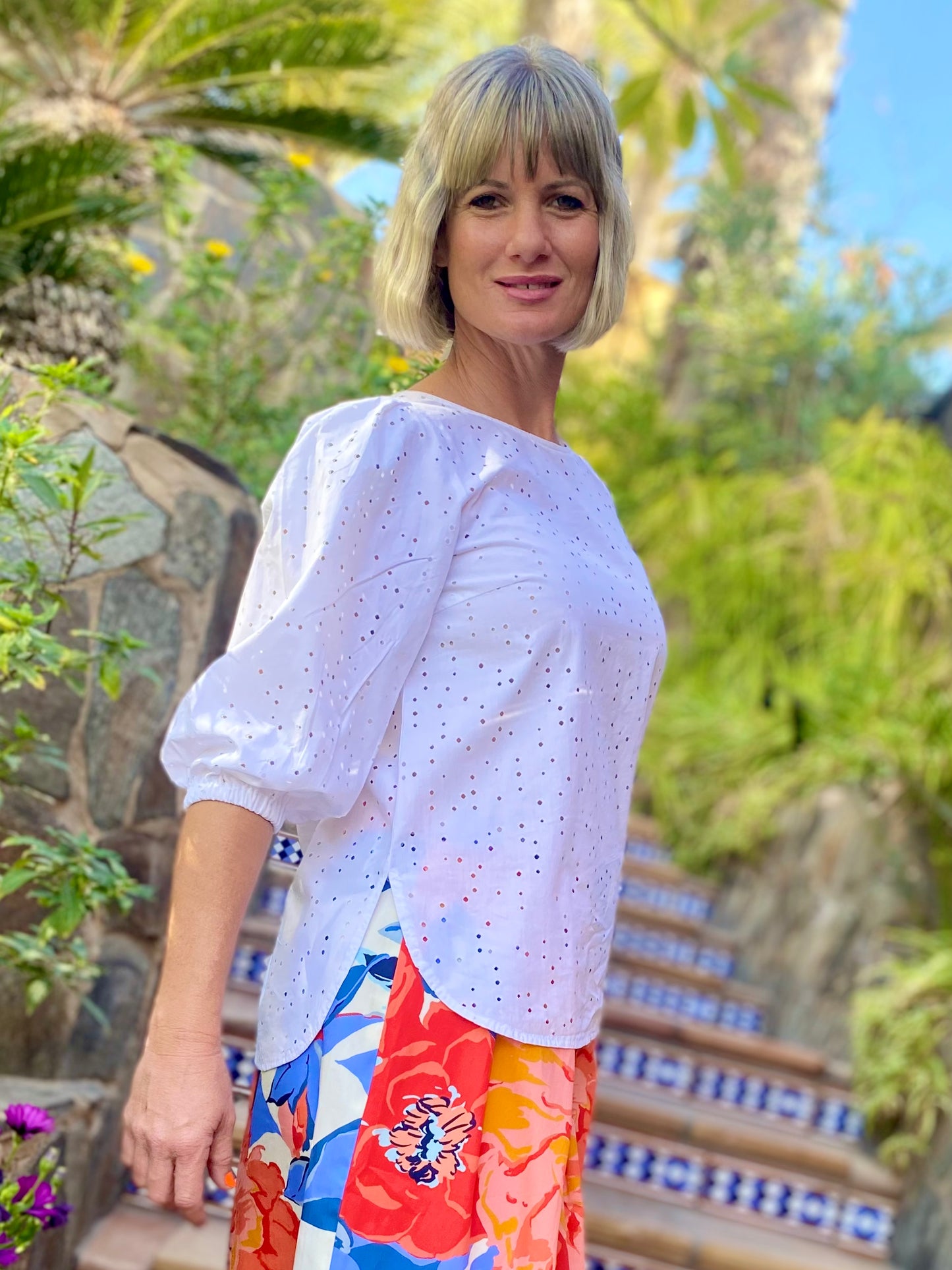 Blouses or shirts , which top is your favorite? Blouses are ideal companions in the warm season; depending on the choice of fabric, they have a cooling effect on the skin. The only disadvantage is that cotton and viscose in particular tend to wrinkle, so they should be ironed after washing. Apart from the wide, pleated sleeves, Svenja 's cut is pure and straight. The beautiful boat neckline and the strongly rounded hem complement the wide sleeves, which are gathered together with elastic at the hem.