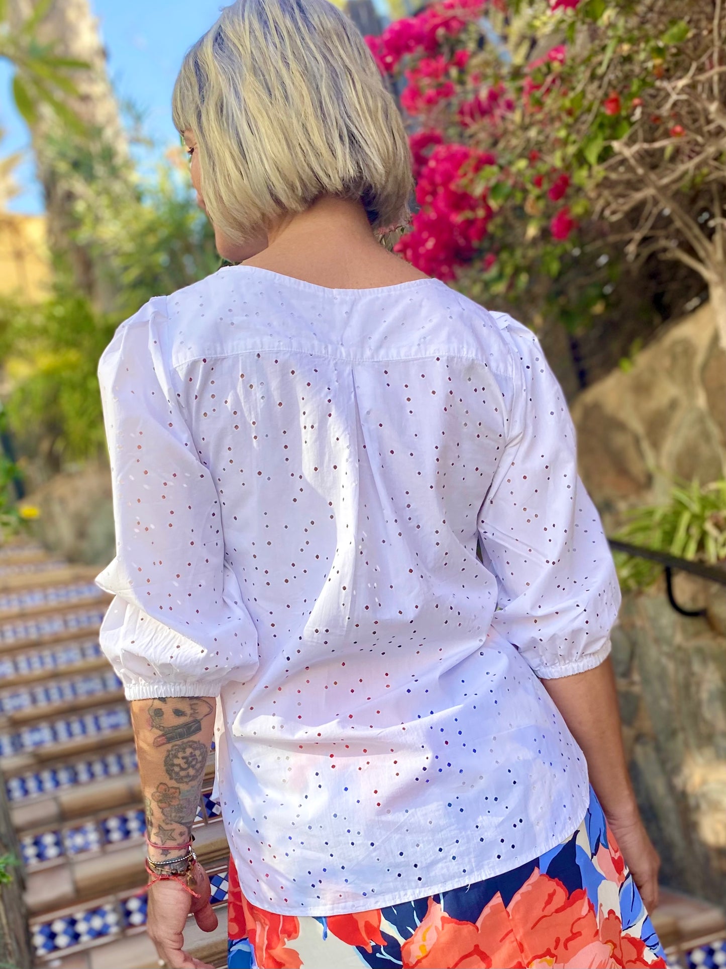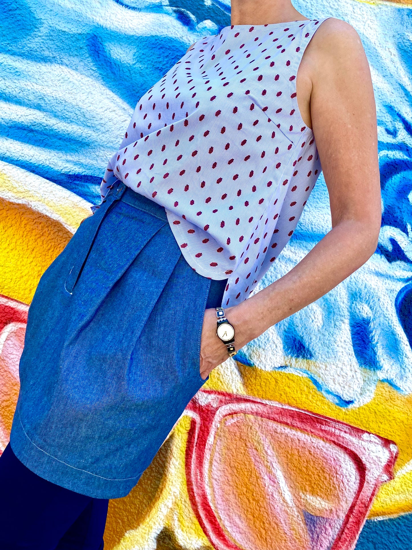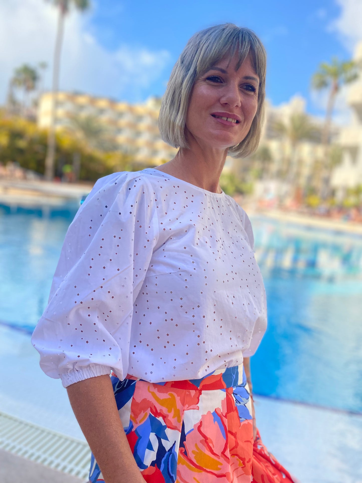 Blouses or shirts , which top is your favorite? Blouses are ideal companions in the warm season; depending on the choice of fabric, they have a cooling effect on the skin. The only disadvantage is that cotton and viscose in particular tend to wrinkle, so they should be ironed after washing. Apart from the wide, pleated sleeves, Svenja 's cut is pure and straight. The beautiful boat neckline and the strongly rounded hem complement the wide sleeves, which are gathered together with elastic at the hem.