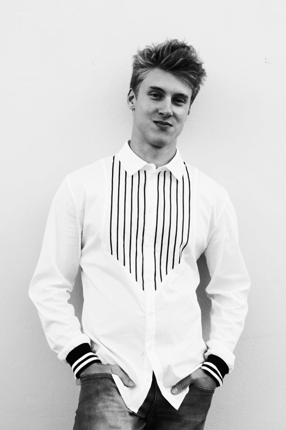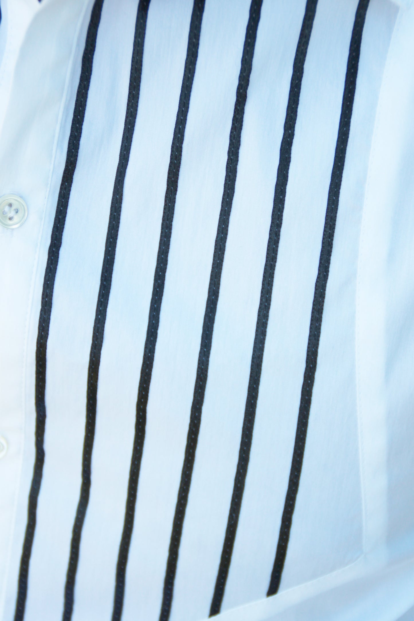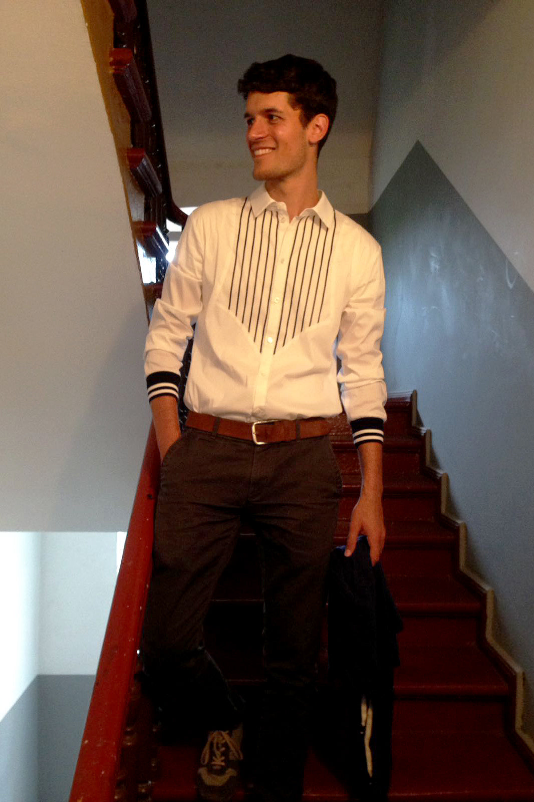 Wer schon unsere Bluse Paula hier gesichtet hat, weiß, dass der Name Paul zu diesem Hemd nicht von ungefähr kommt. In Anlehnung an einen Liebesfilm aus den 70igern haben wir dieses figurbetonte Herrenhemd für dich entworfen. Die Mehrheit der Männer entscheidet sich bei Nachfrage bestimmt eher für einen Sweater oder Hoodie, bequem und lässig eben, auch Jakob greift gewöhnlich zu einem dieser beiden Kleidungsstücke. Während des Shootings musste er jedoch mit einem Schmunzeln zugeben, dass er Paul ziemlich cool findet und sich durchaus wohl darin fühlt. Vielleicht überrascht du einfach mal deinen Mann, Freund, Vater oder Sohn, bei mir hat es jedenfalls geklappt. Paul kannst du mit zwei unterschiedlichen Armsaumvarianten nähen, einmal mit Manschette und Schlitz und einmal mit einem Strickbündchen. Der Einsatz im Vorderteil ist bei unserem Paul mit 3mm breiten schwarzen Satinbändchen aufgepeppt, die kann man natürlich auch weglassen.