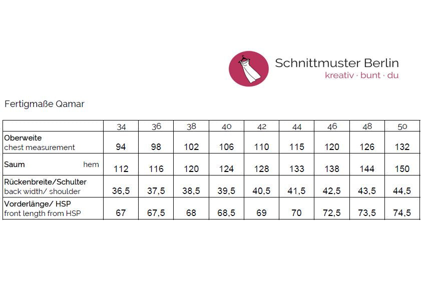 als Einzel- und Mehrgrößenschnitt von 34-50.