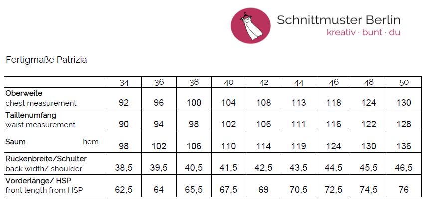 als Einzel- und Mehrgrößenschnitt von 34-50.