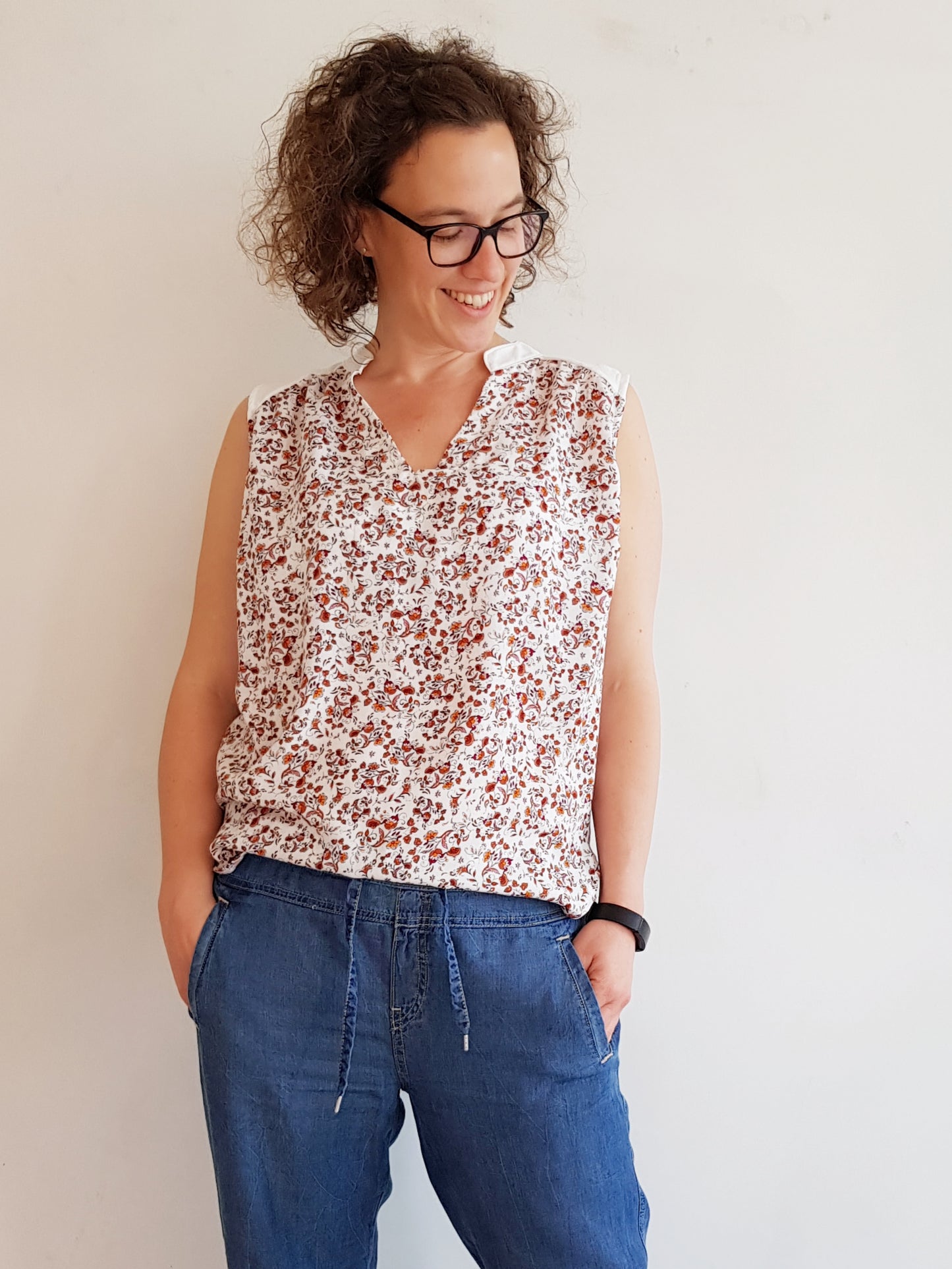 Der Schnitt is allerdings extrem weit. Ich habe die Bluse dann zwei Nummern kleiner genäht. So ist die Weite passend.