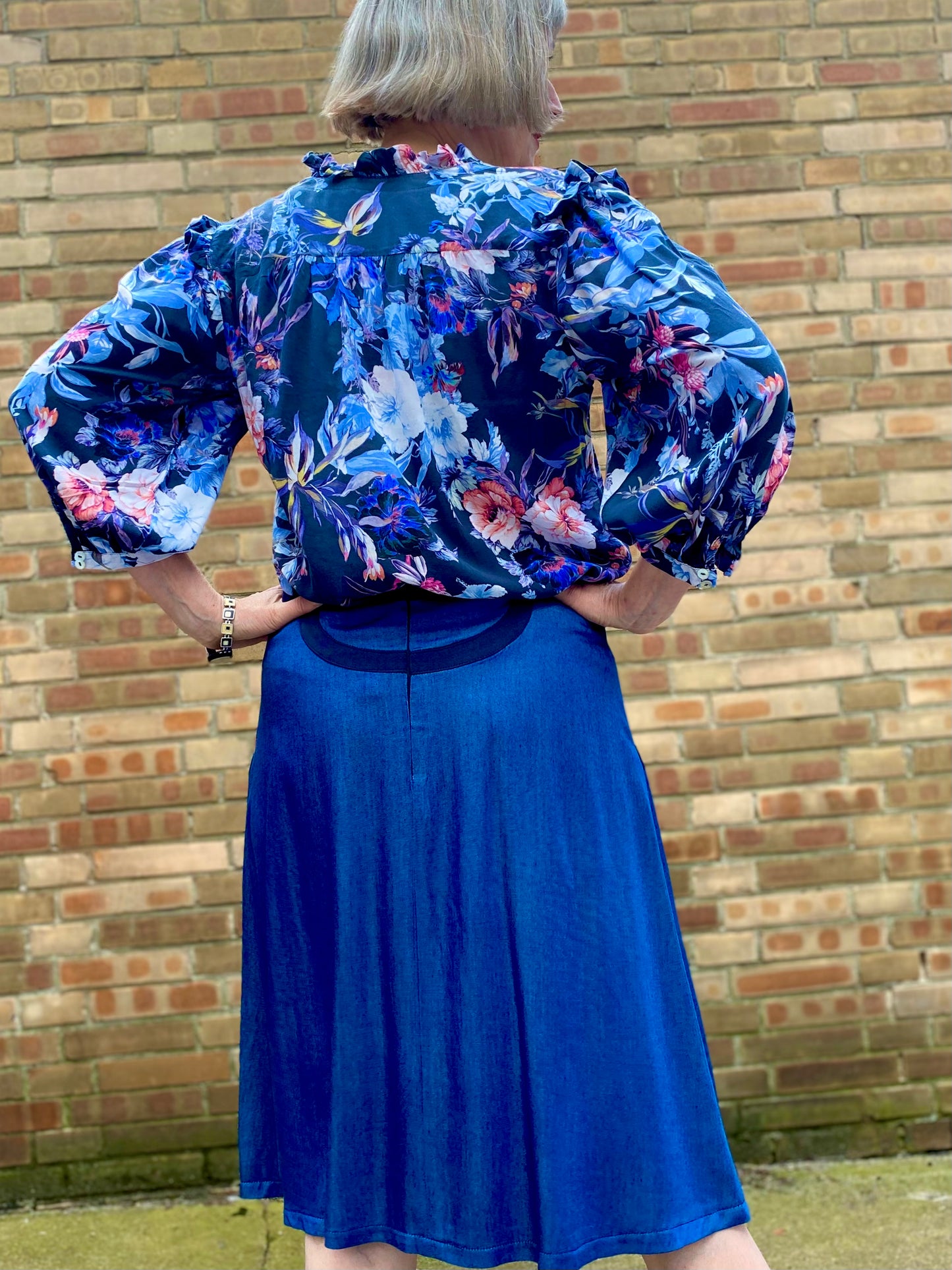 Zusätzlich sorgt die Kräuselweite unter den Blenden für eine fabelhafte Weite, während die ausgestellten Seitennähte den Rock zum Schwingen bringen.