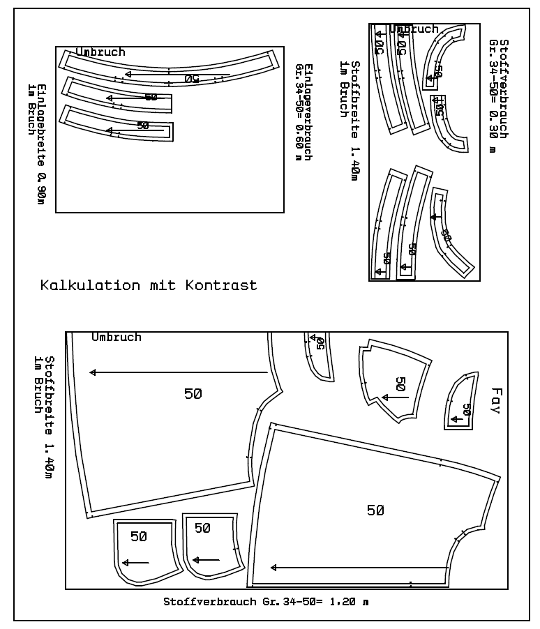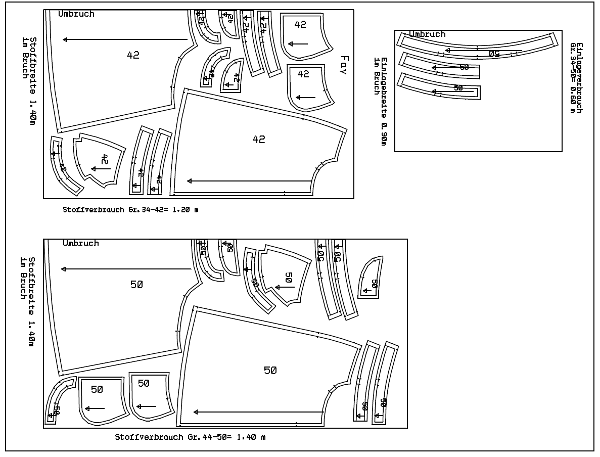 Größen 34-50 Einlage = 0,60 m/90 cm breit