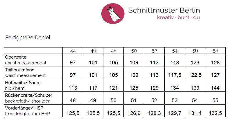 Erhältlich als Einzel- und Mehrgrößenschnitt von 44-58