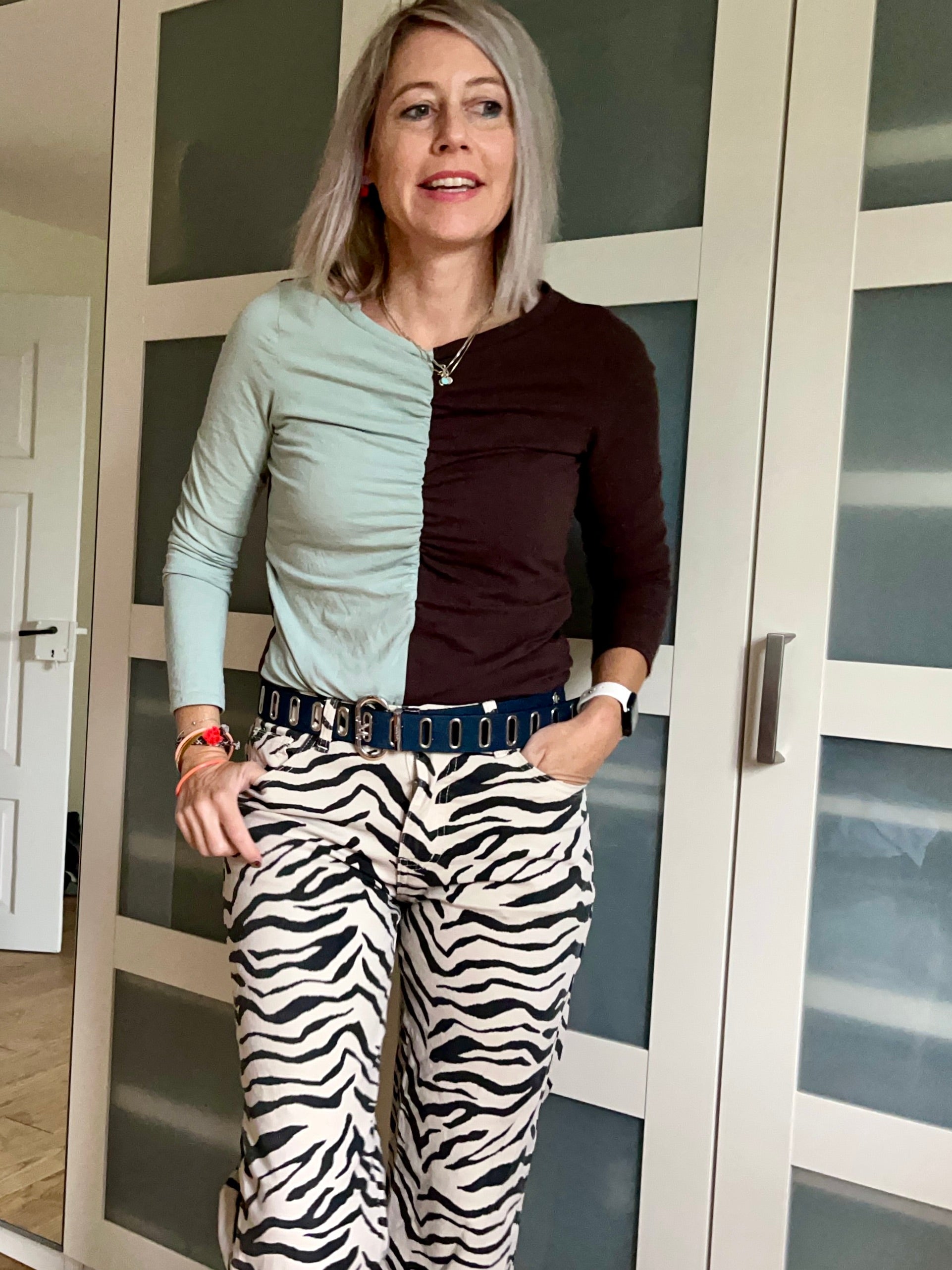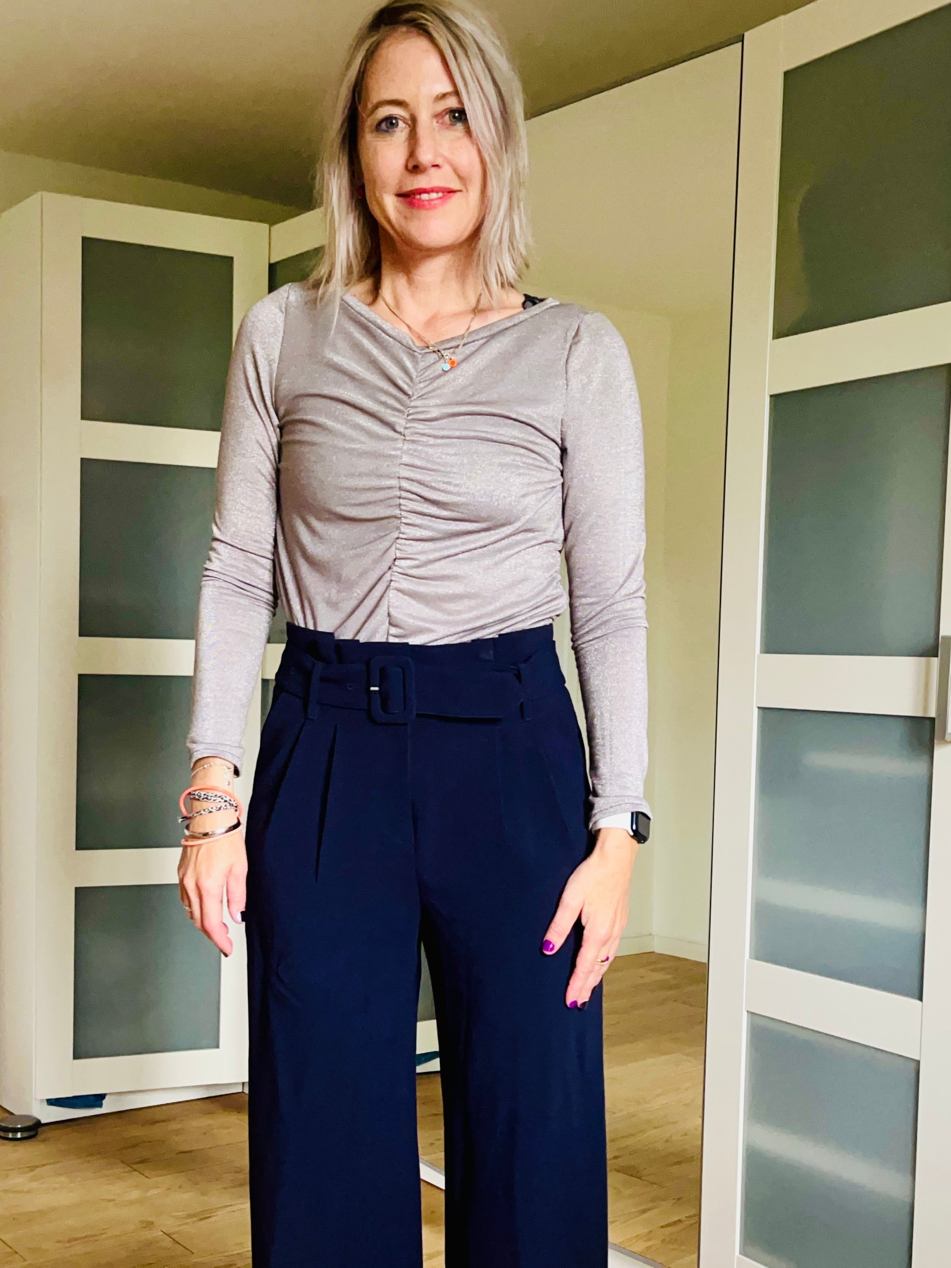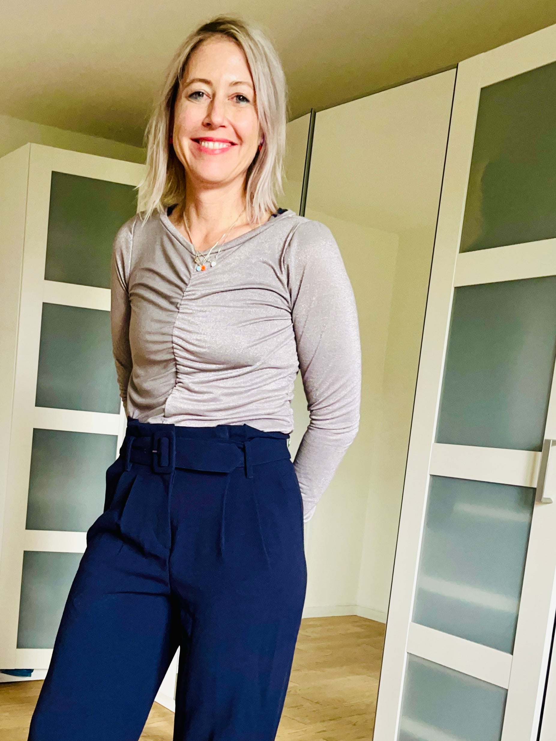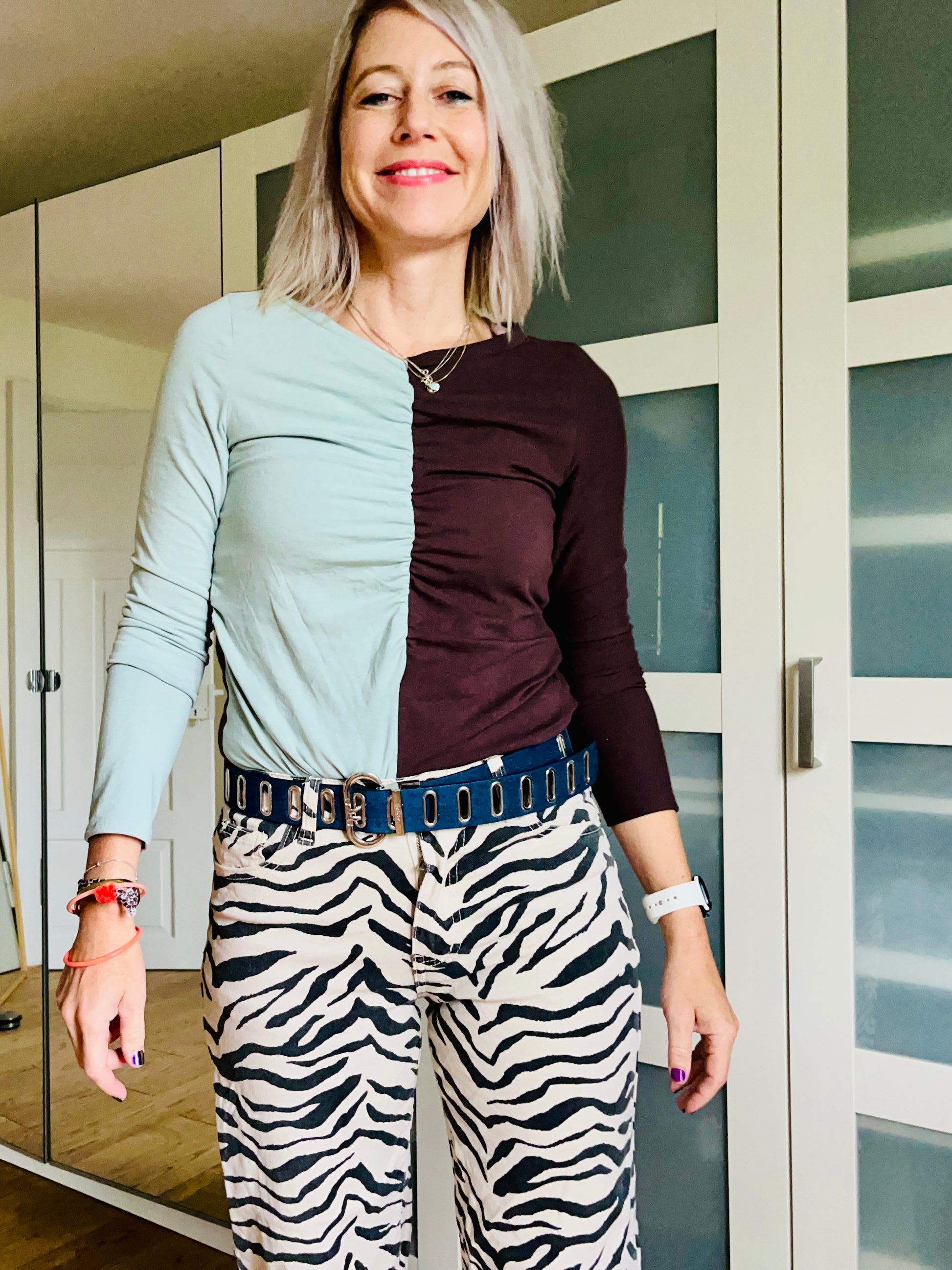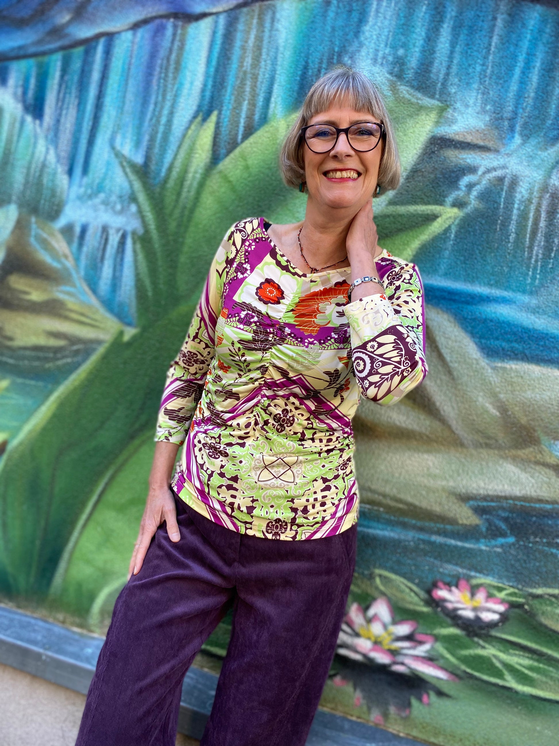 Die Ärmel und der Rücken bleiben bewusst klassisch gehalten, damit der Fokus ganz auf dem besonderen Front-Design liegt. Und wer das Ganze in Glitzerjersey näht, braucht keine Accessoires mehr – dieses Shirt glänzt einfach für sich!