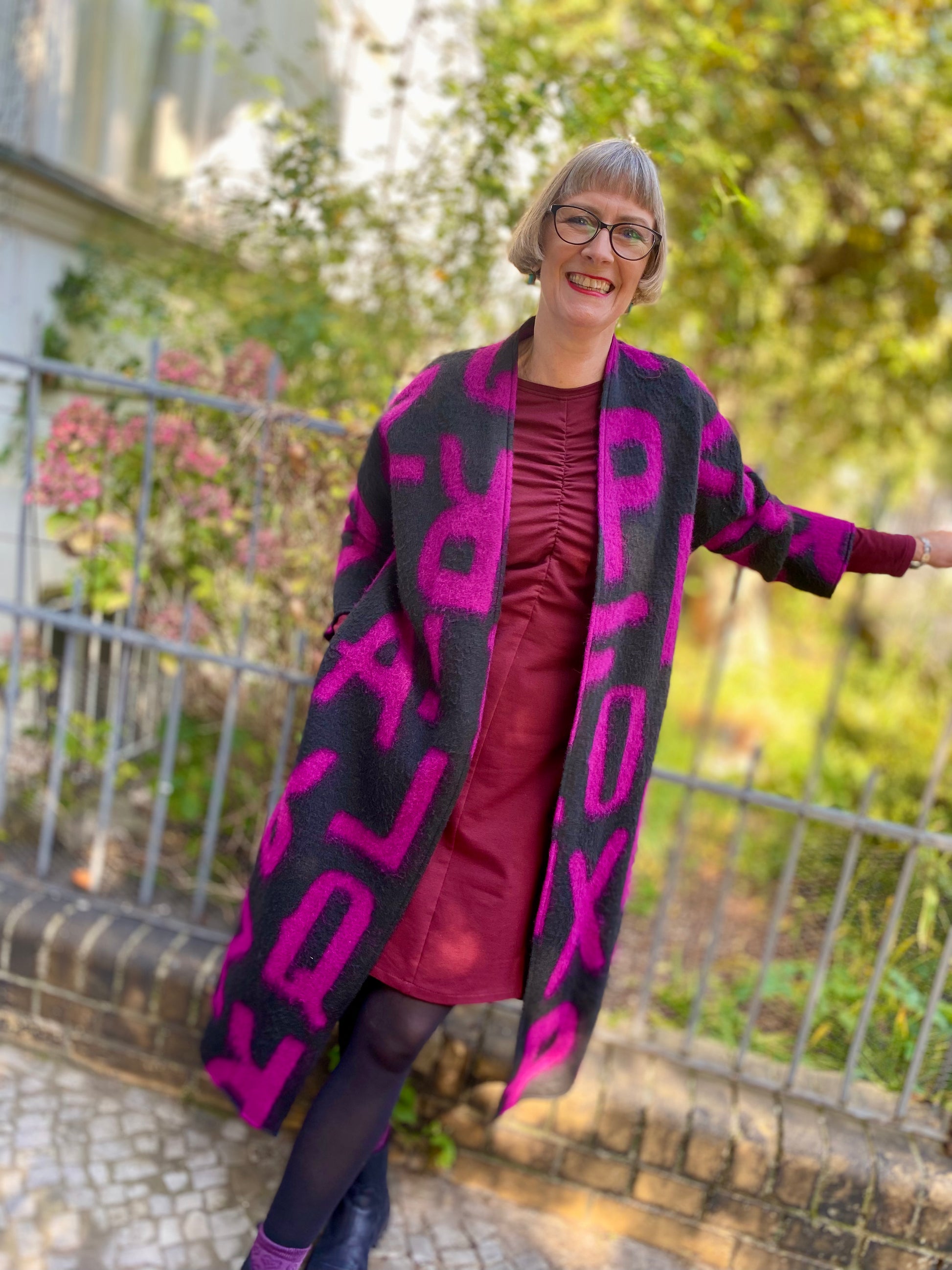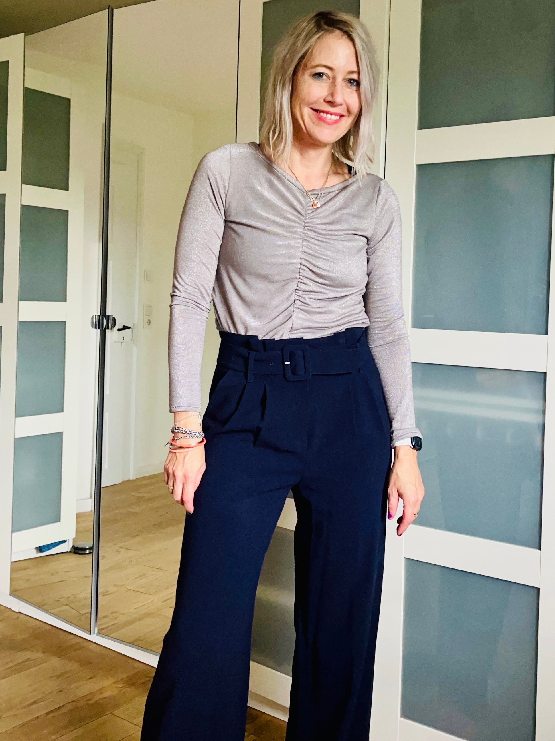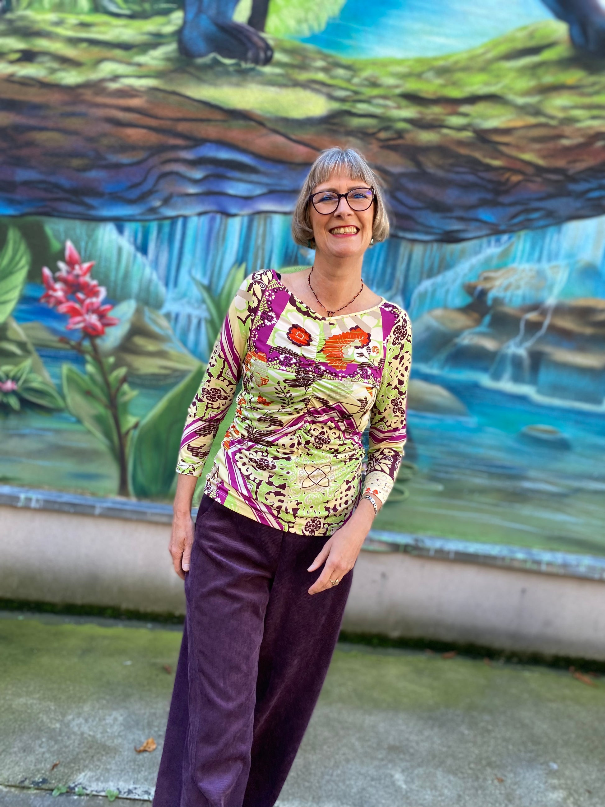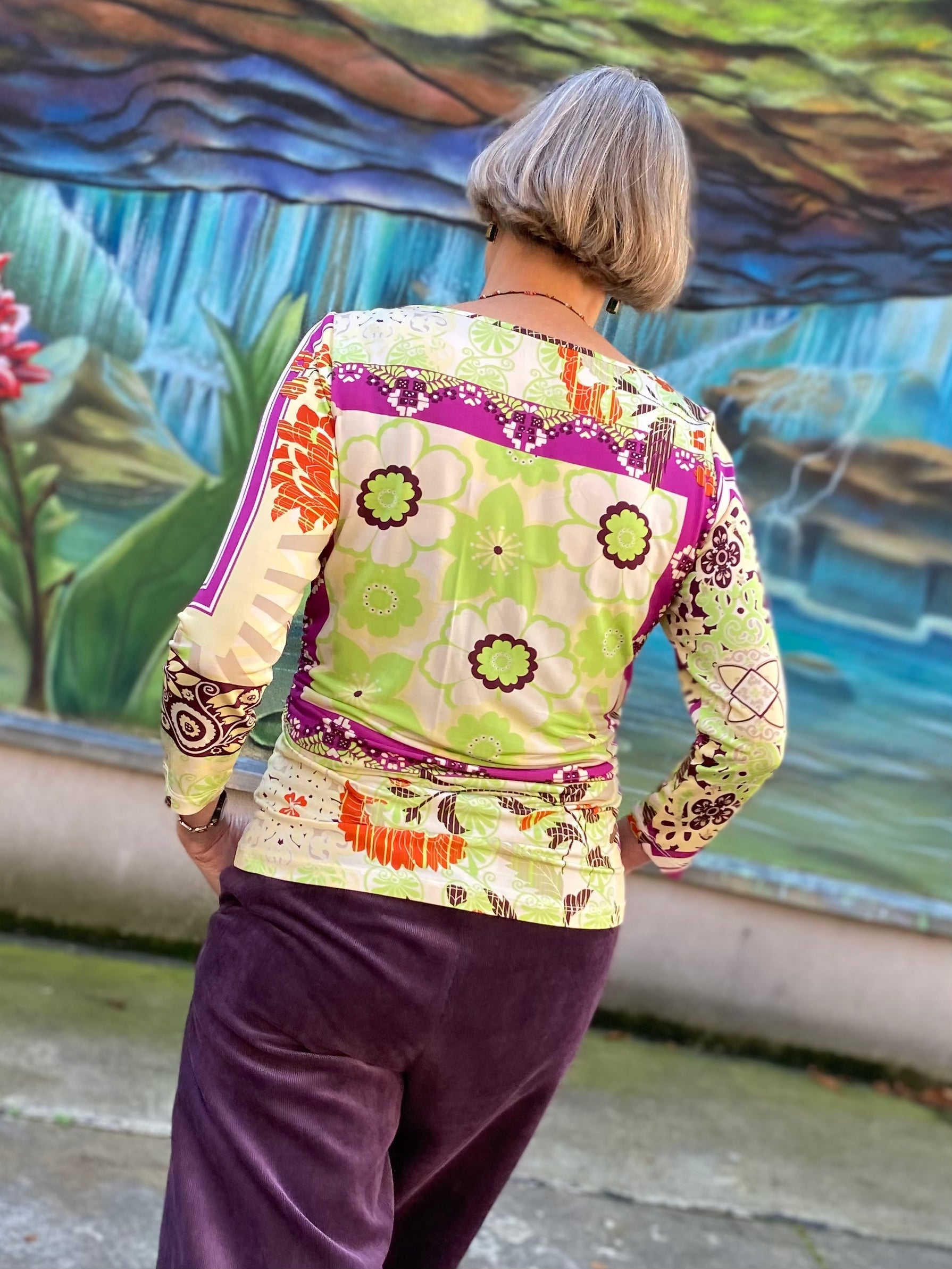 Die Ärmel und der Rücken bleiben bewusst klassisch gehalten, damit der Fokus ganz auf dem besonderen Front-Design liegt. Und wer das Ganze in Glitzerjersey näht, braucht keine Accessoires mehr – dieses Shirt glänzt einfach für sich!