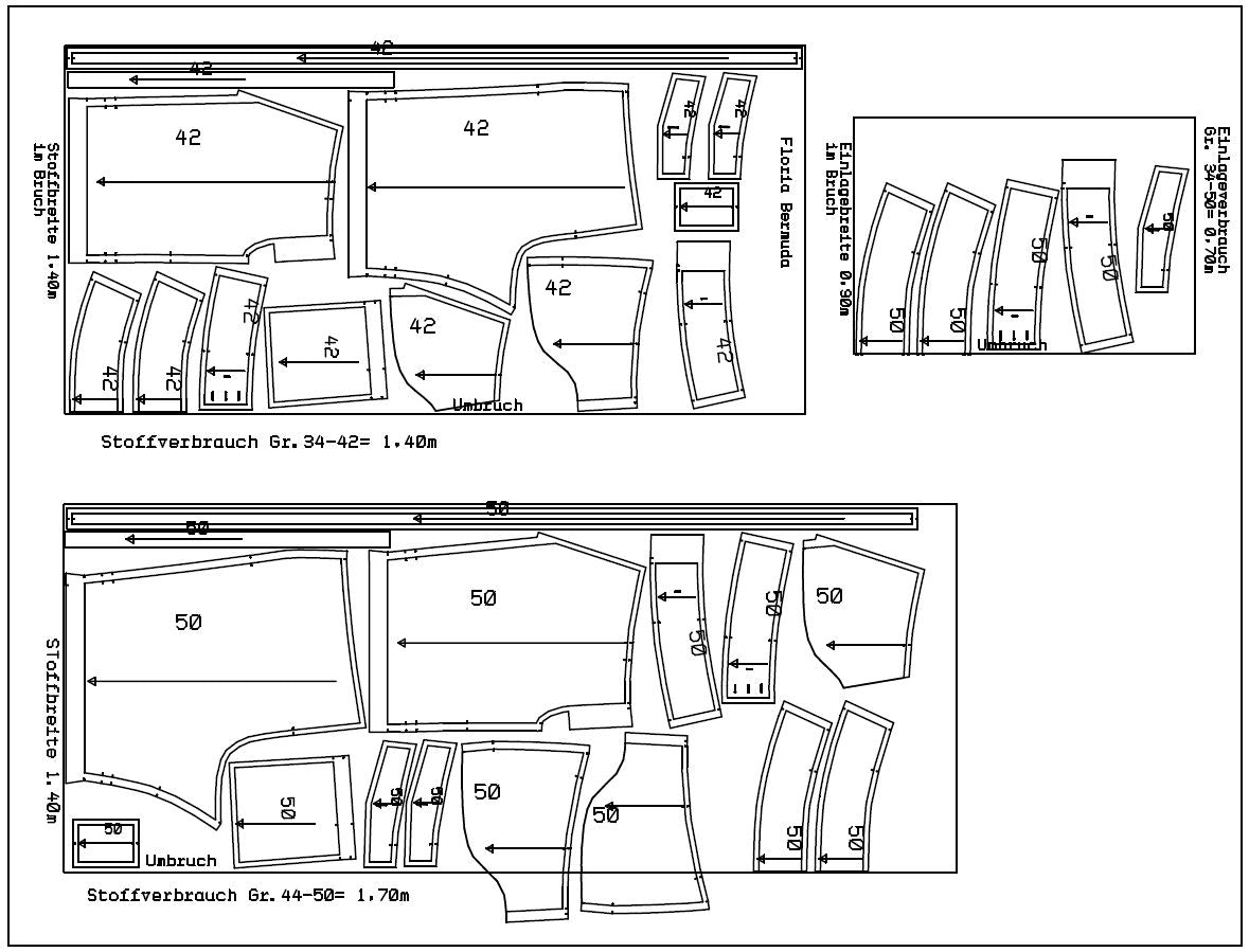 Die Bermudaschnitteile sind als Freebook in der Mehrgröße 34-50 mit Ebenen zum direkten ausdrucken und selber zusammenkleben.