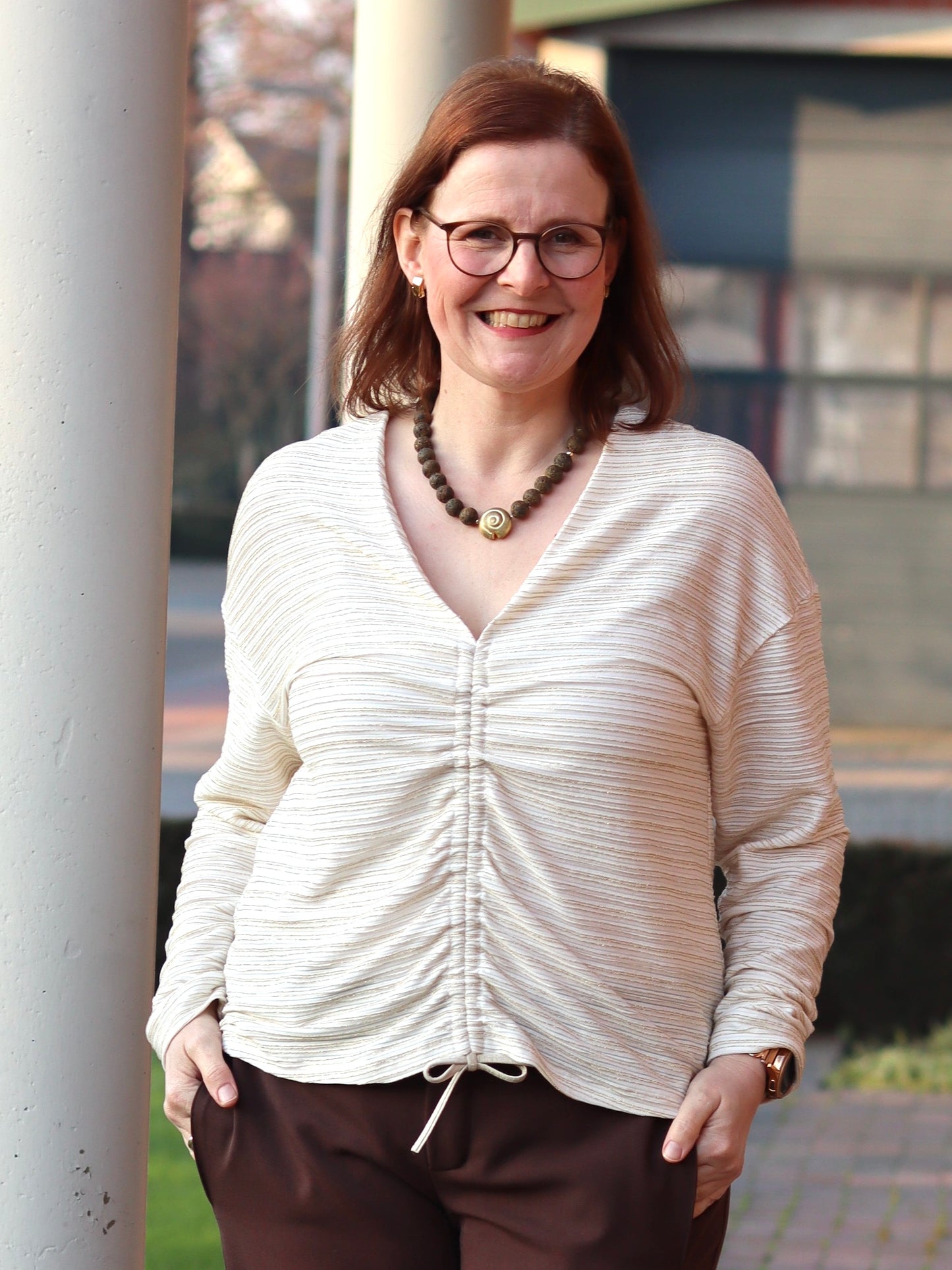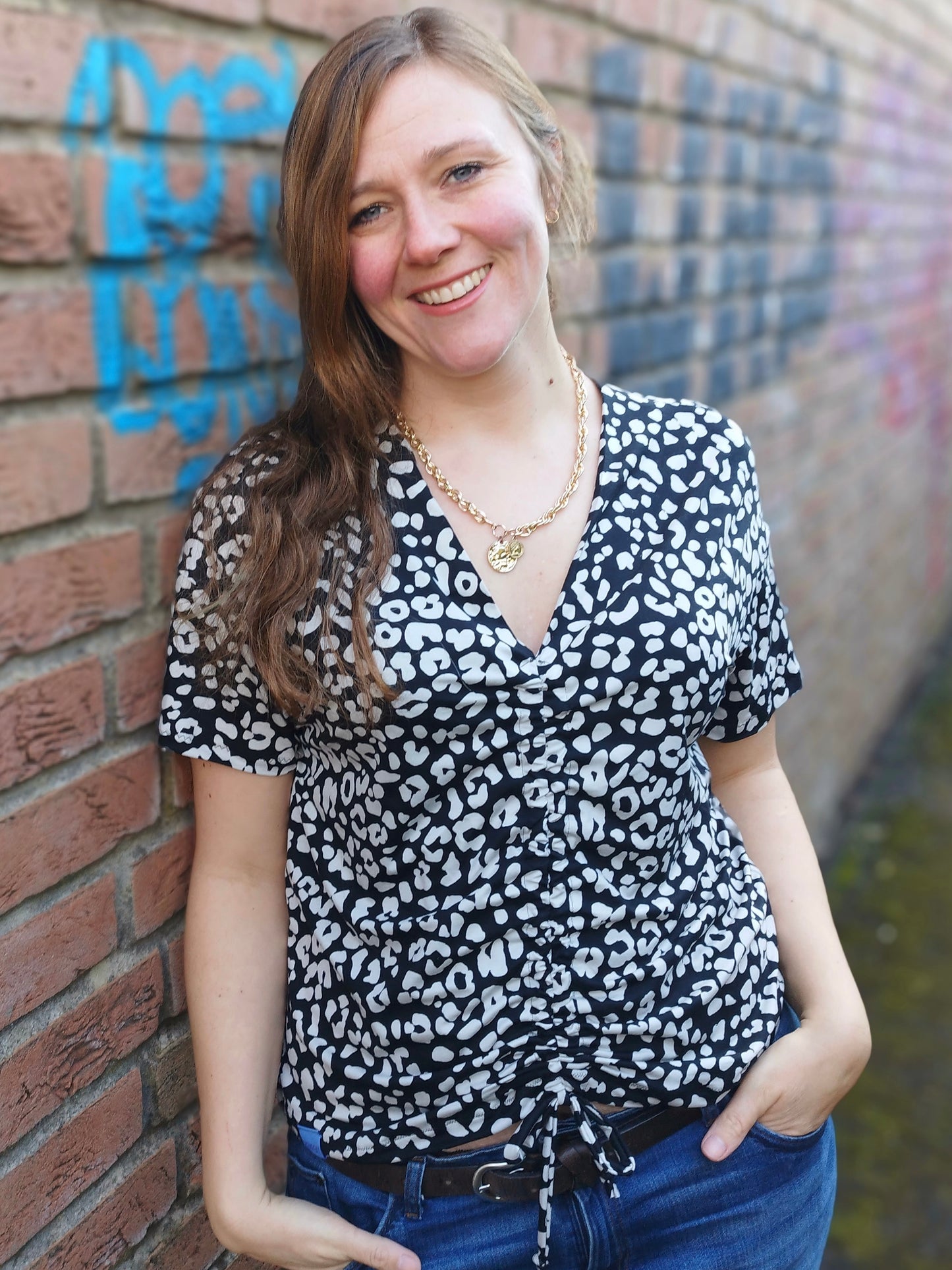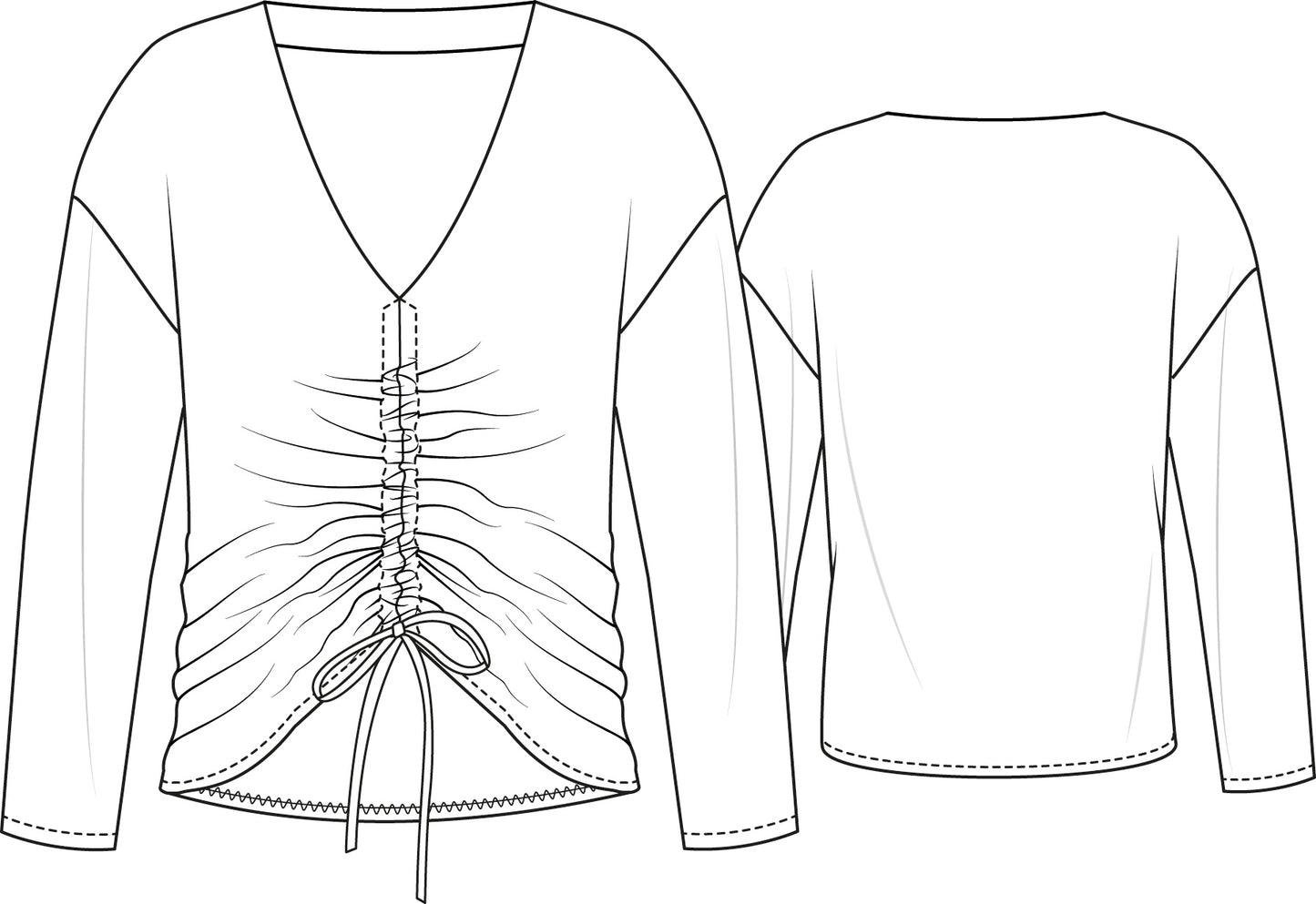 1 fix 3 genäht und trotzdem mit dem gewissen Etwas: In der vorderen Mitte kannst du das Shirt mit zwei Bändchen in einem Tunnelzug zusammenziehen.