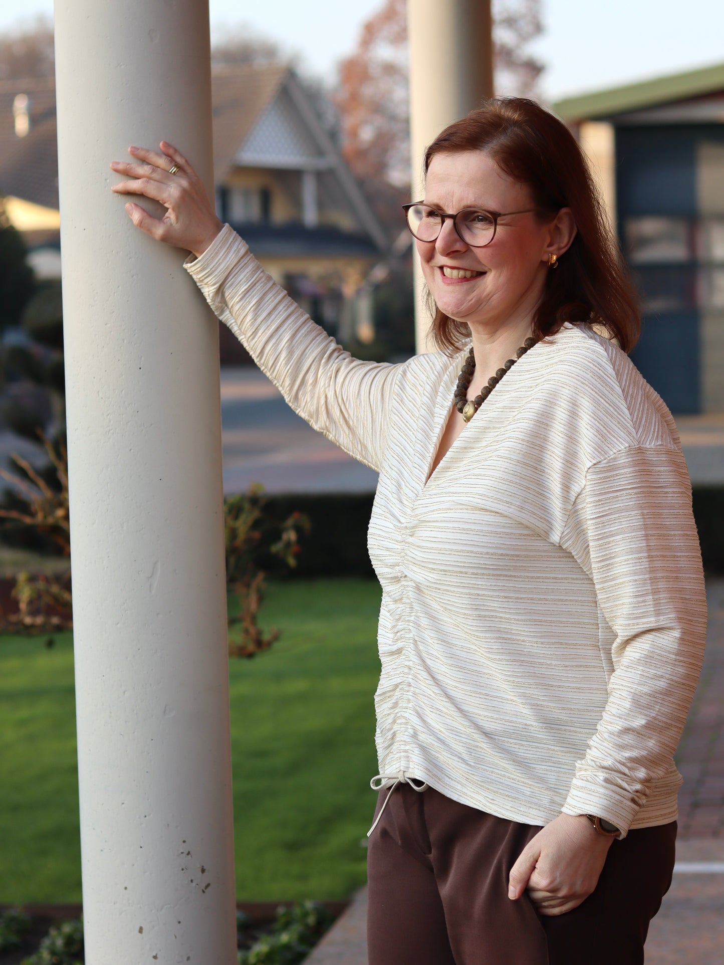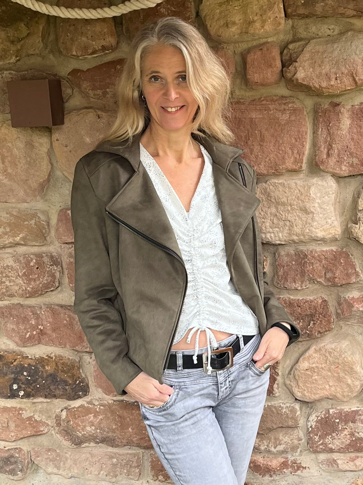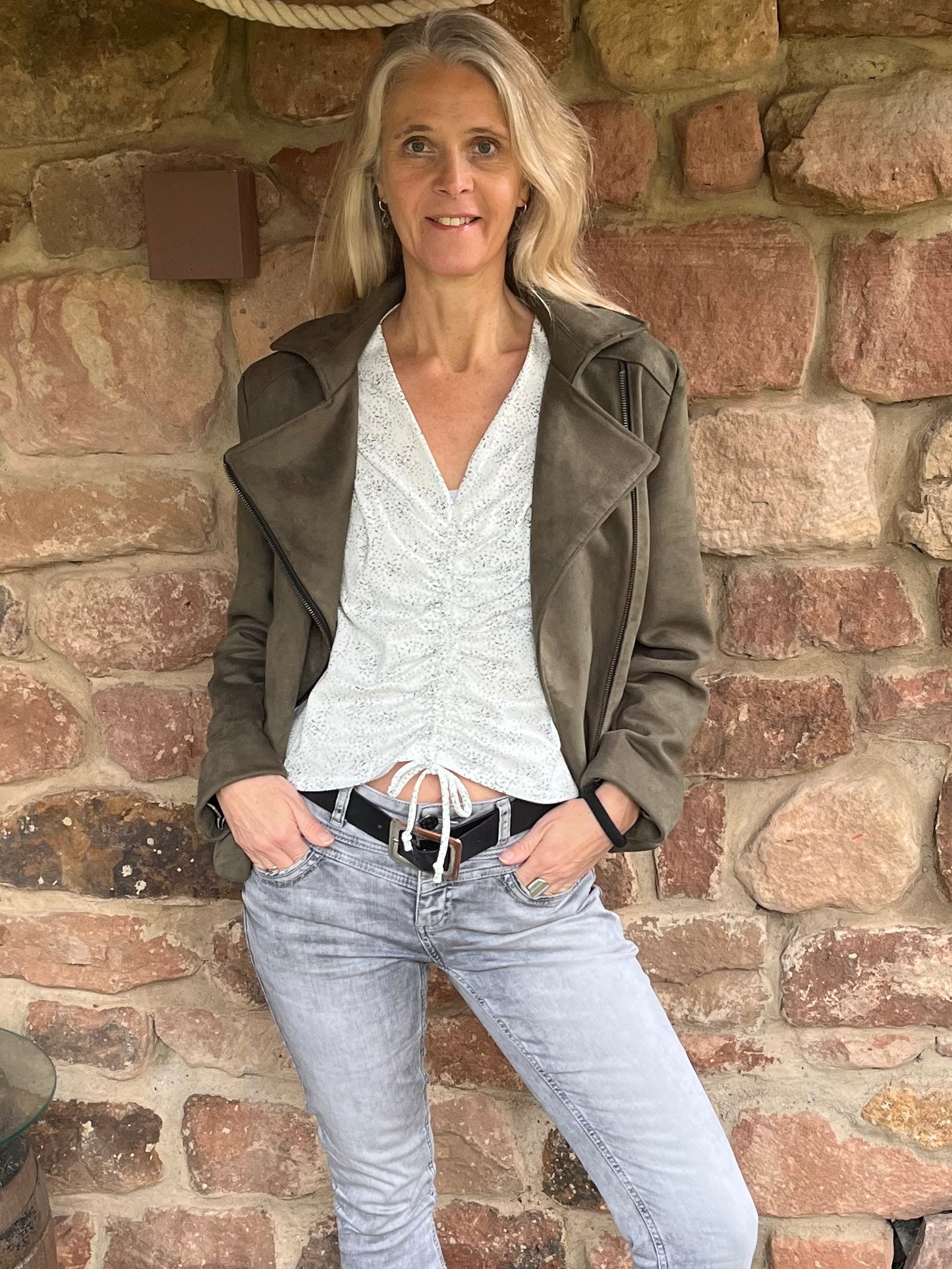1 fix 3 genäht und trotzdem mit dem gewissen Etwas: In der vorderen Mitte kannst du das Shirt mit zwei Bändchen in einem Tunnelzug zusammenziehen.