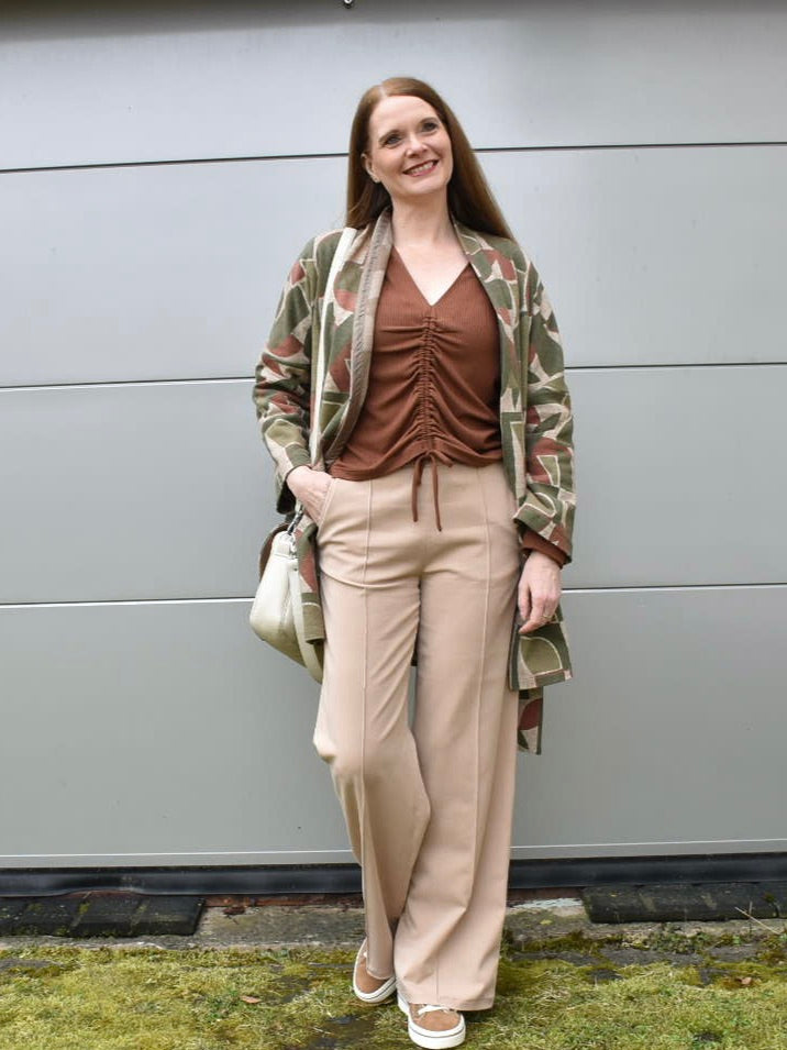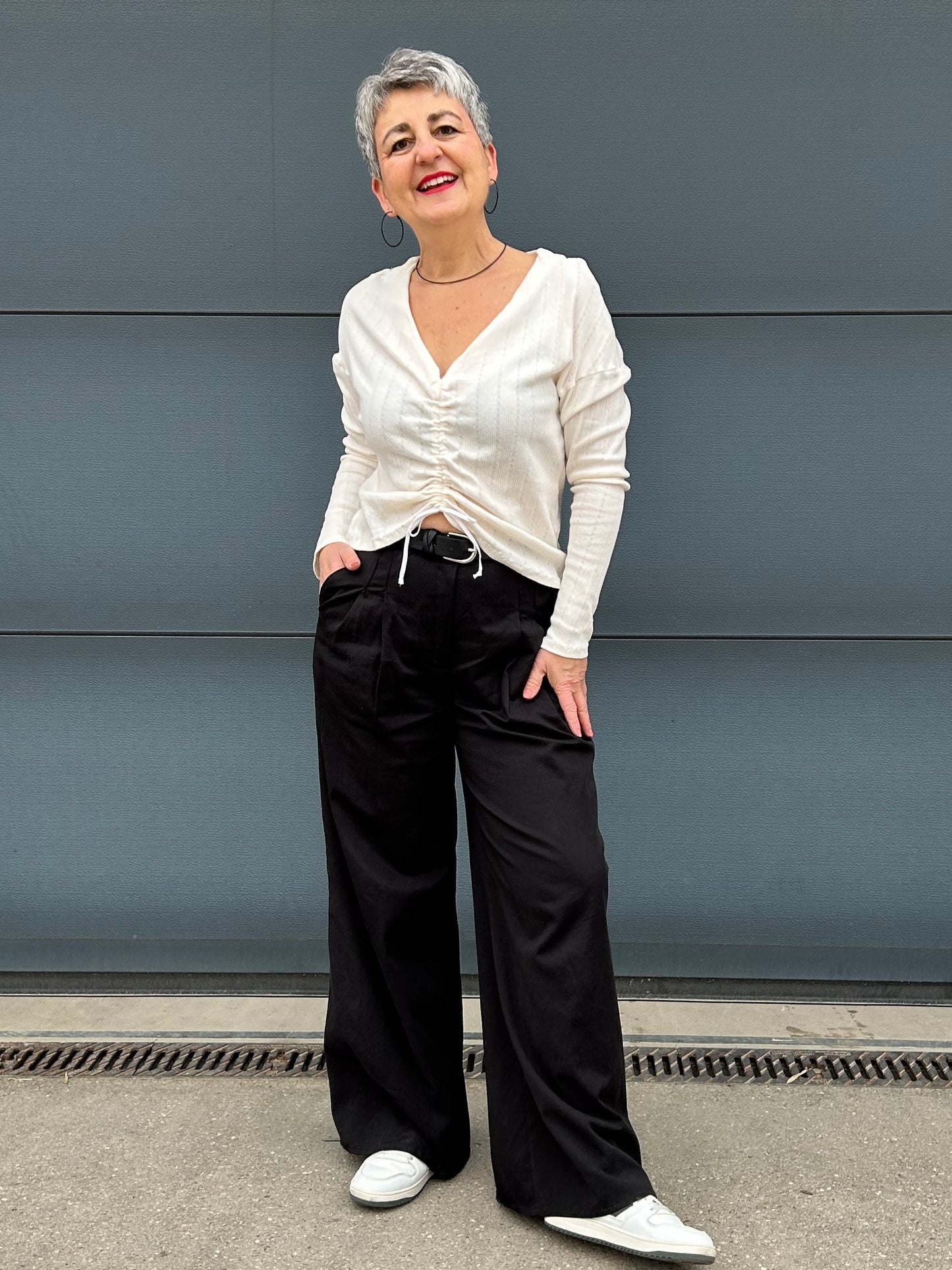 Wähle einen sehr weichen Jersey für eine luftige Sommervariante oder einen etwas festeren Jersey, für einen ausdrucksstarken Look mit sichtbaren Tunnelzugfalten.