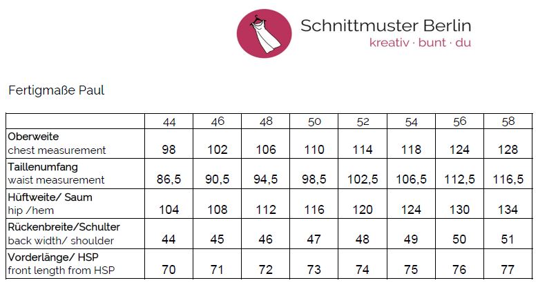 als Einzel- und Mehrgrößenschnitt von 34-50.