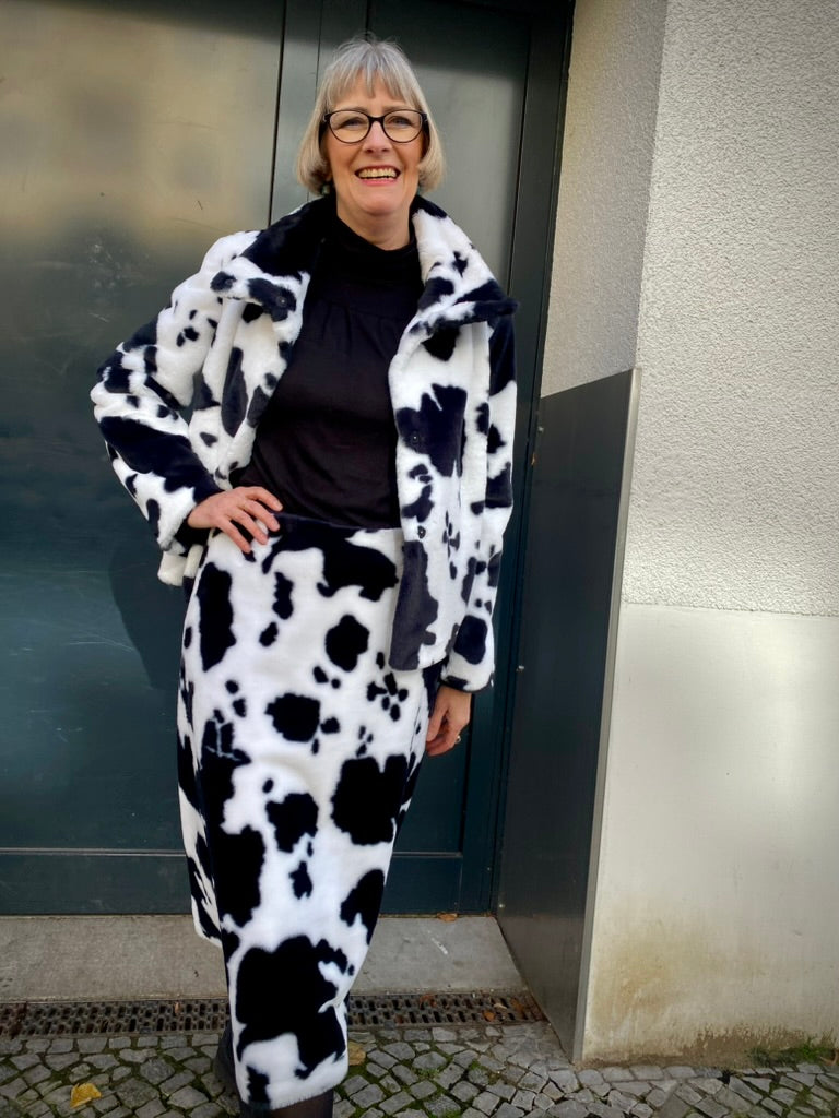 Hinten wartet dein kleiner Wow-Moment: ein nahtfeiner Reißverschluss in der hinteren Mitte, perfekt ergänzt durch formende Abnäher für den idealen Sitz. Und das Beste? Durch den ausgestellten Saum brauchst du keinen Gehschlitz – einfach reinschlüpfen, wohlfühlen, losflanieren!