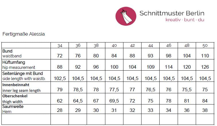 Alessia ist ein Projekt für Näherinnen mit Erfahrung: Reißverschluss, Bund und Taschen fordern dein Können und heben deine Skills spürbar an. Die knöchellange Länge von ca. 104 cm inklusive Bund macht die Hose vielseitig kombinierbar – Sneaker, Boots oder Heels, alles passt. Genäht werden kann Alessia aus allen hosentauglichen Stoffen, von lässig bis elegant.