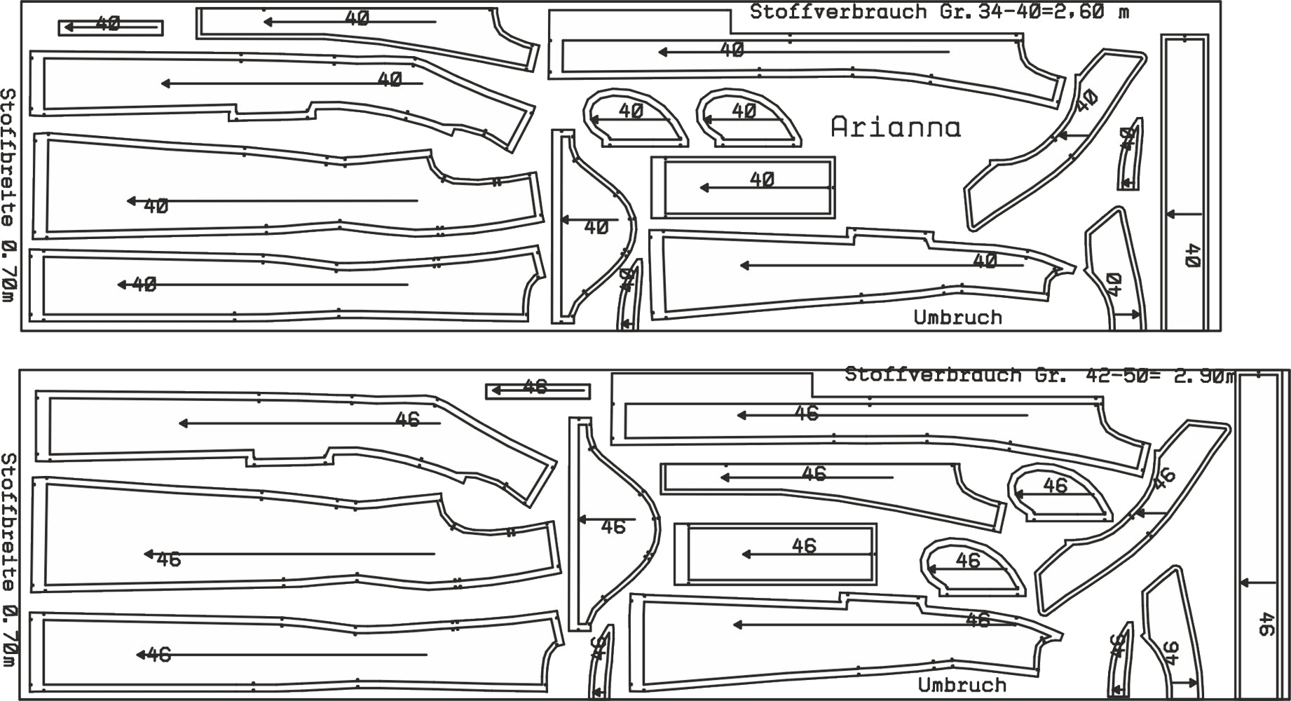 Erhältlich als Einzel- und Mehrgrößenschnitt von 34-50