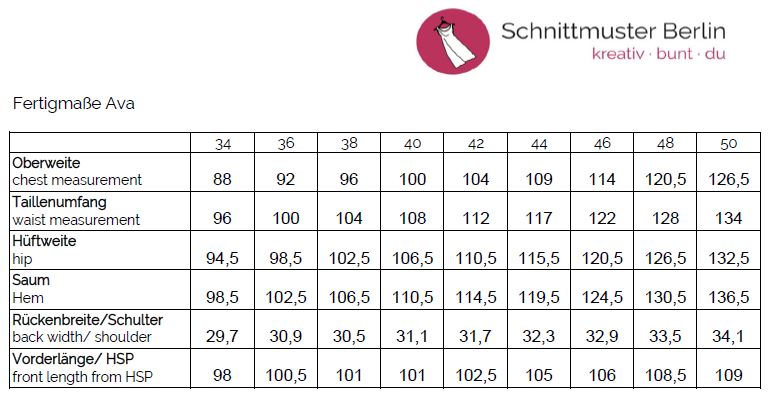 Erhältlich als Einzel- und Mehrgrößenschnitt von 34-50