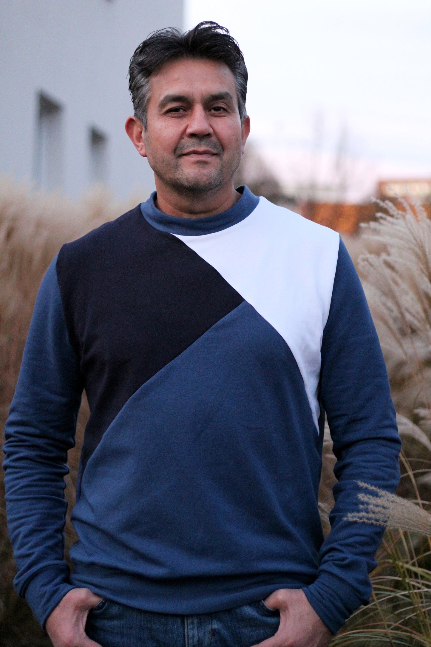Ikarus ist ein leicht zu nähender Pulloverschnitt für Männer. Das gepatchte Vorderteil macht aus dem klassischen Sweater allerdings etwas ganz besonderes. Der Materialmix kann natürlich individuell gestaltet werden. Wir schlagen vor, einen Mix aus Jersey und Kunstleder zu verwenden. Das Kunstleder wertet den sonst sportlichen Look auf.