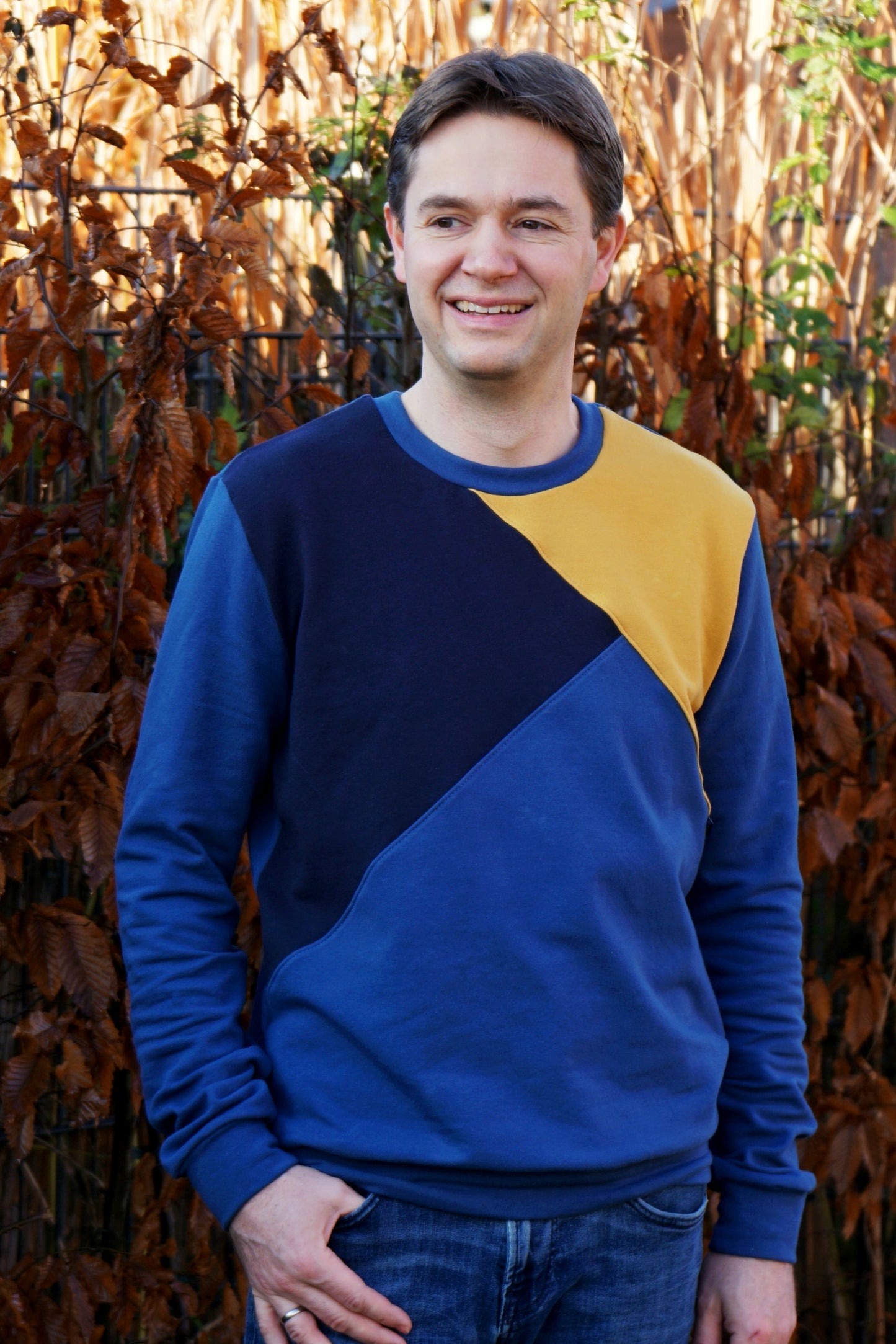 Der Schnitt hat sich sehr gut nähen lassen. Ich habe das Vorderteil aus einem Stück gefertigt, da ich ein Stoffpaneel verwenden habe. Über die Passform kann ich noch nicht viel sagen, weiblich ihn erst zu Weihnachten verschenke.